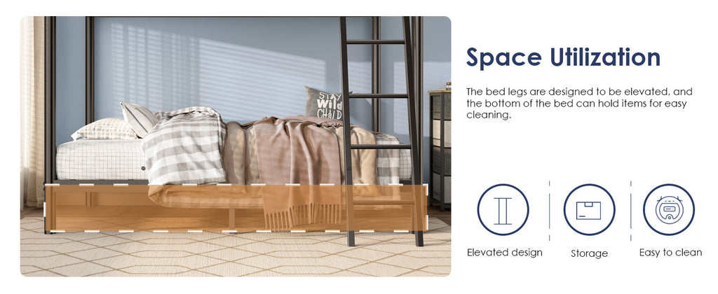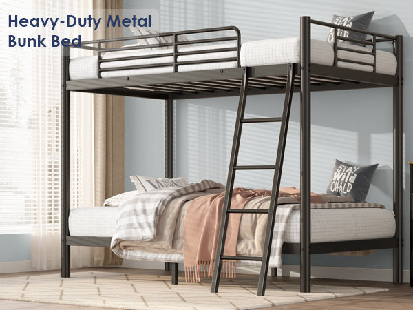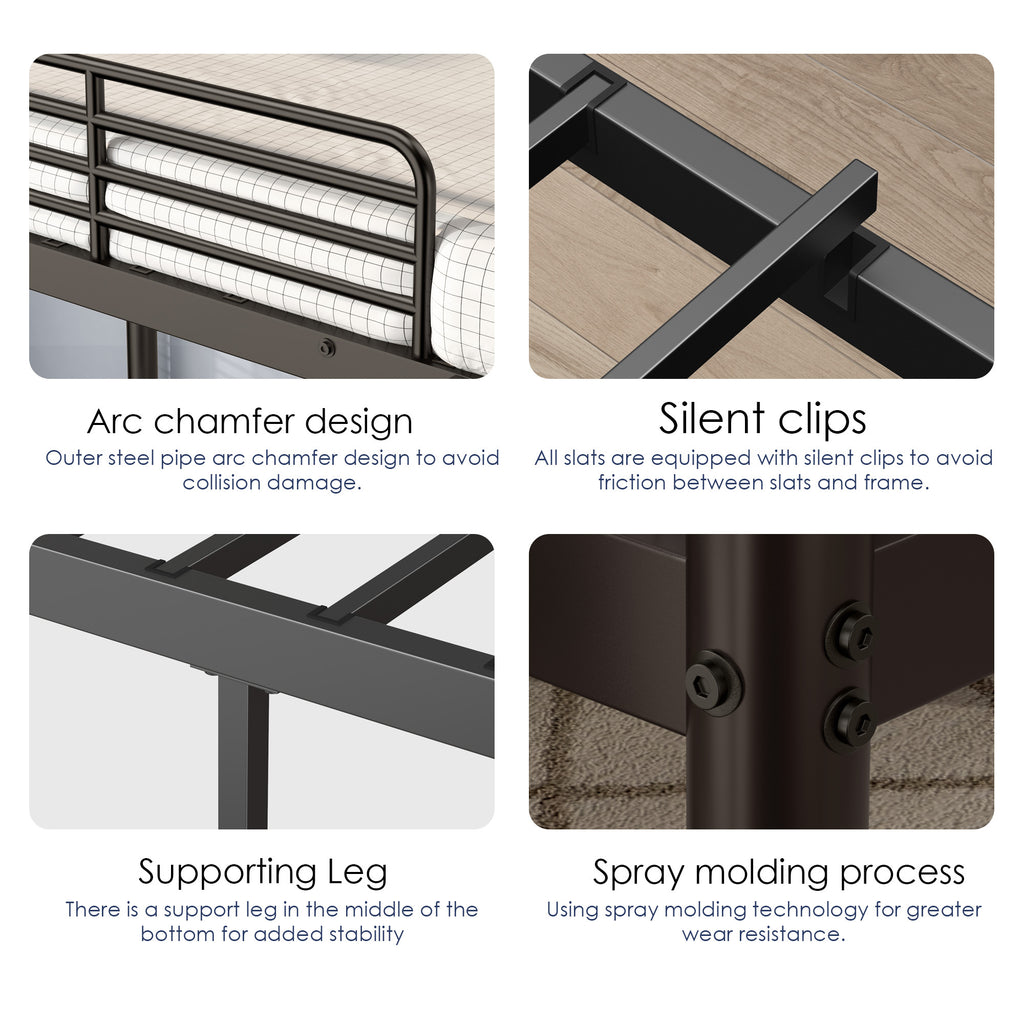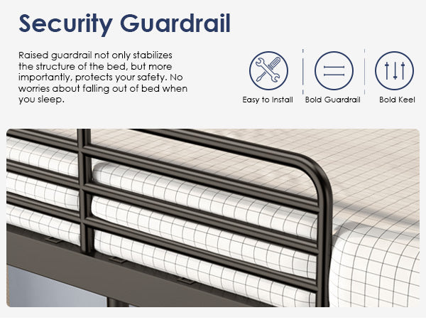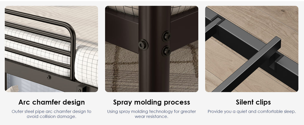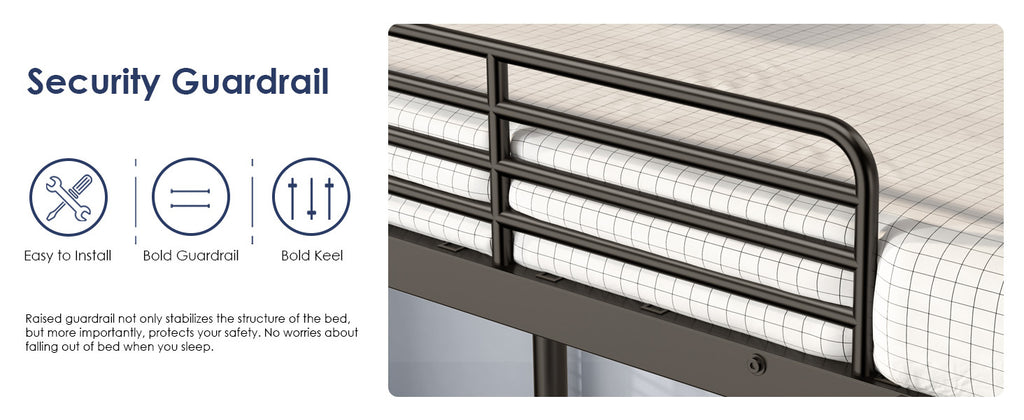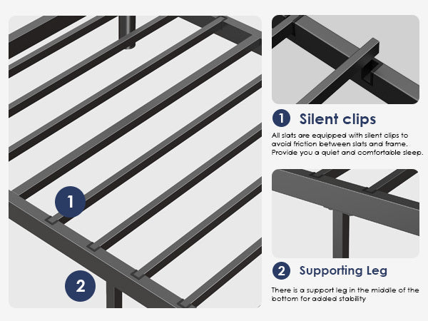 • No Box Spring Required: Heavy metal slats support your mattress without the need for a box spring. Fixed slats and raised sides hold the mattress in place, preventing it from sliding. Suitable for 1 twin and 1 full mattress (sold separately).