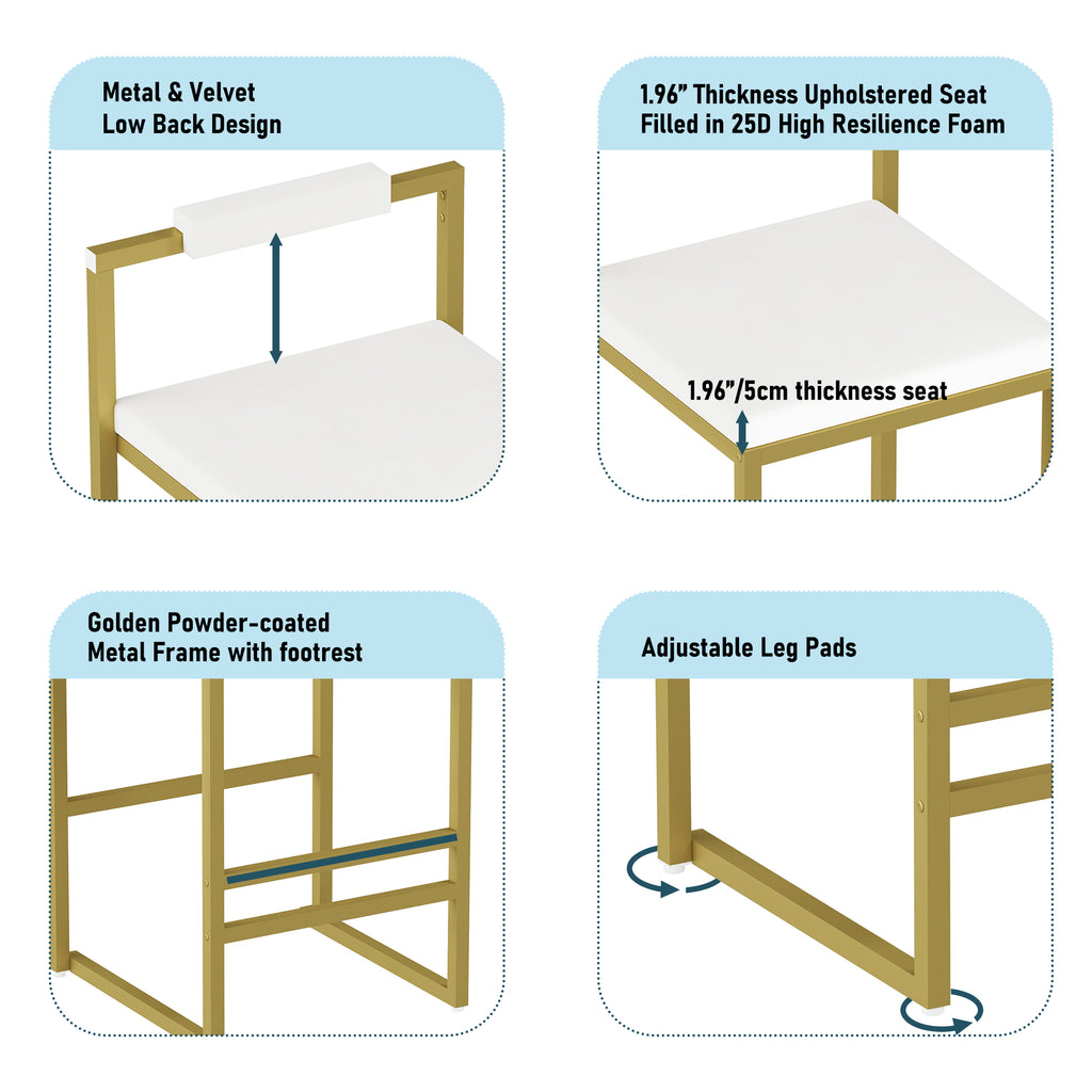 - -Sleek Modern Elegance: Elevate spaces with creamy white velvet seats and slim metal legs, blending contemporary sophistication with anti-slip stability for any floor.