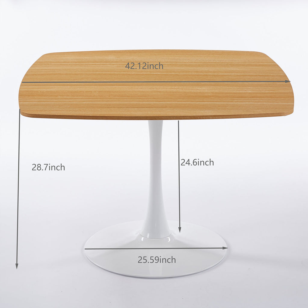 42 Inch Square Tulip Dining Table for 2-6 People, Modern Mid-Century Kitchen Table with MDF Top & Oak Finish, White & Oak Color, Compact Design for Apartment, Bistro, Cafe, Office, and Living Room