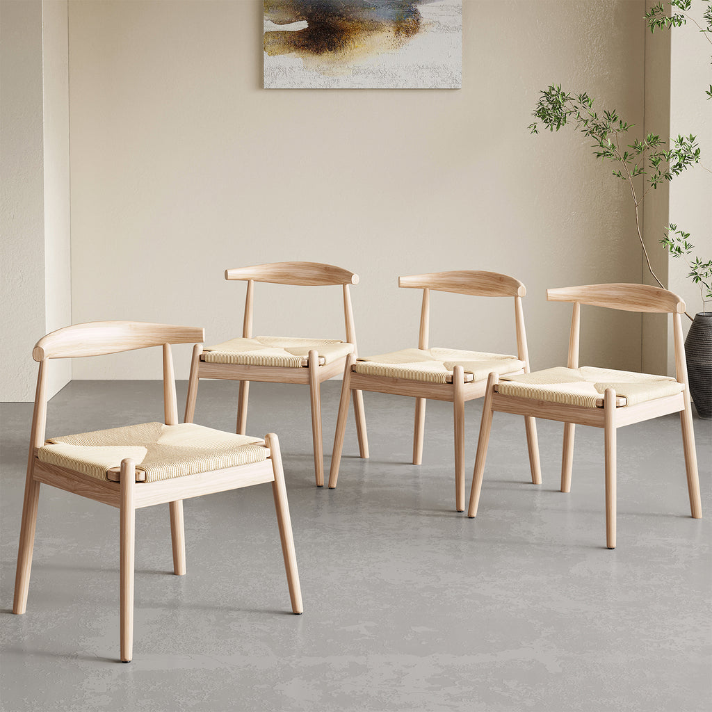 Weave Dining Chairs Set of 2, Mid-Century Modern Kitchen Chair with Solid Oak Frame & Handwoven Seat for Living Dining Room