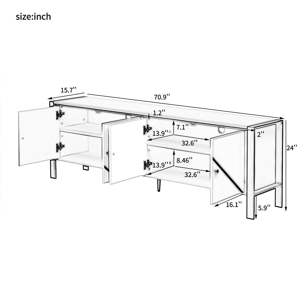 U-Can 70.9''Modern Minimalist TV Stand for TVs up to 75 Inches, Entertainment Center Media Console Cabinet with 2 Spacious Cabinets for Living room
