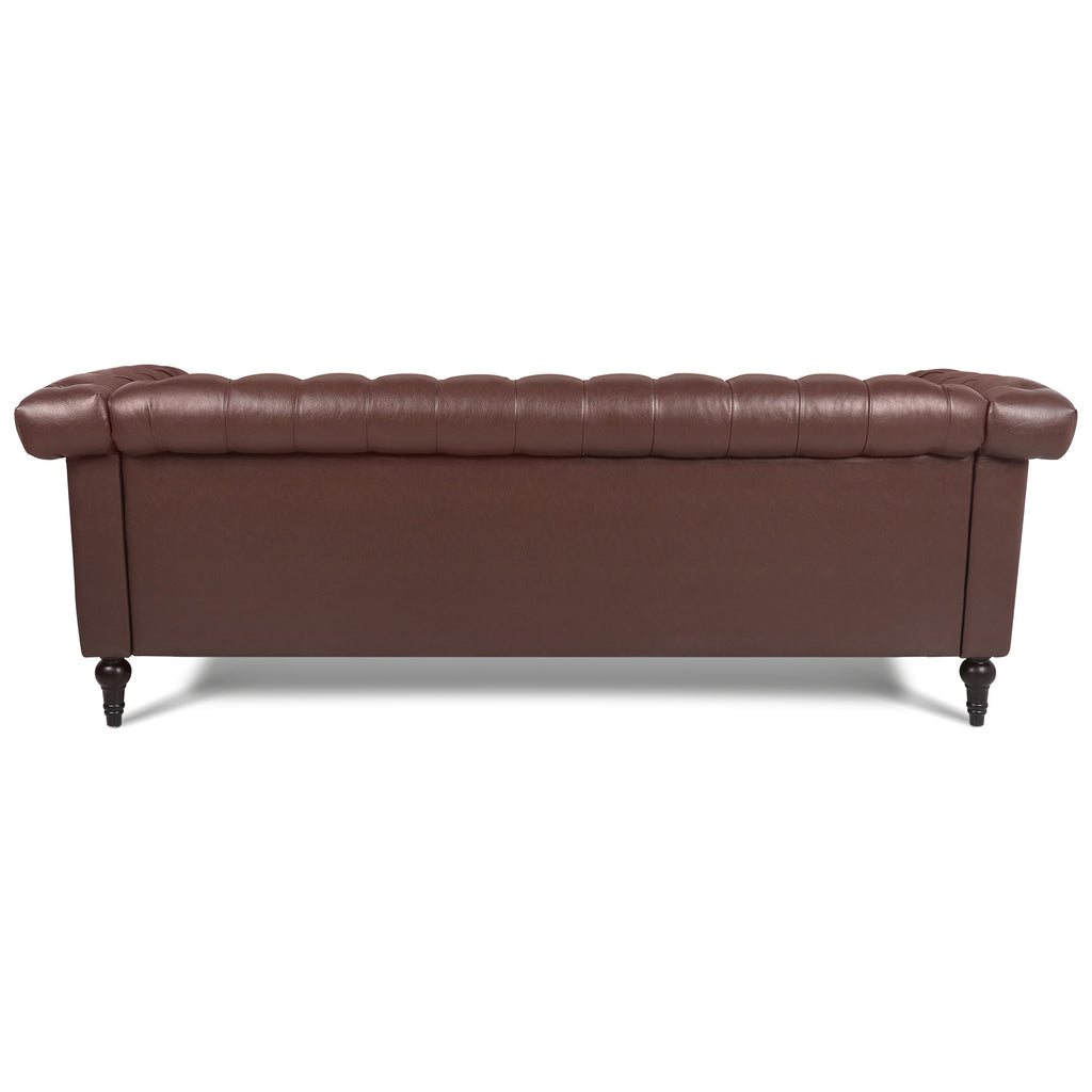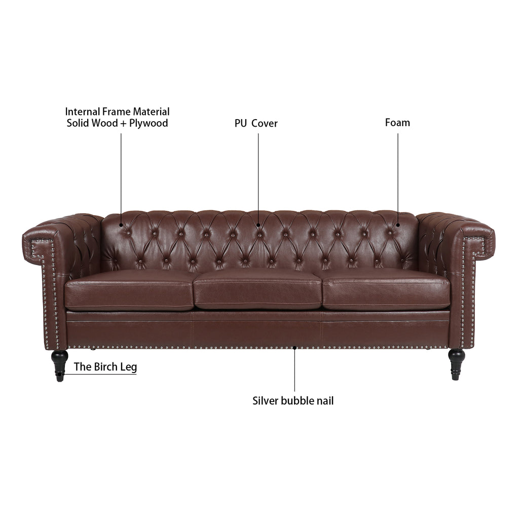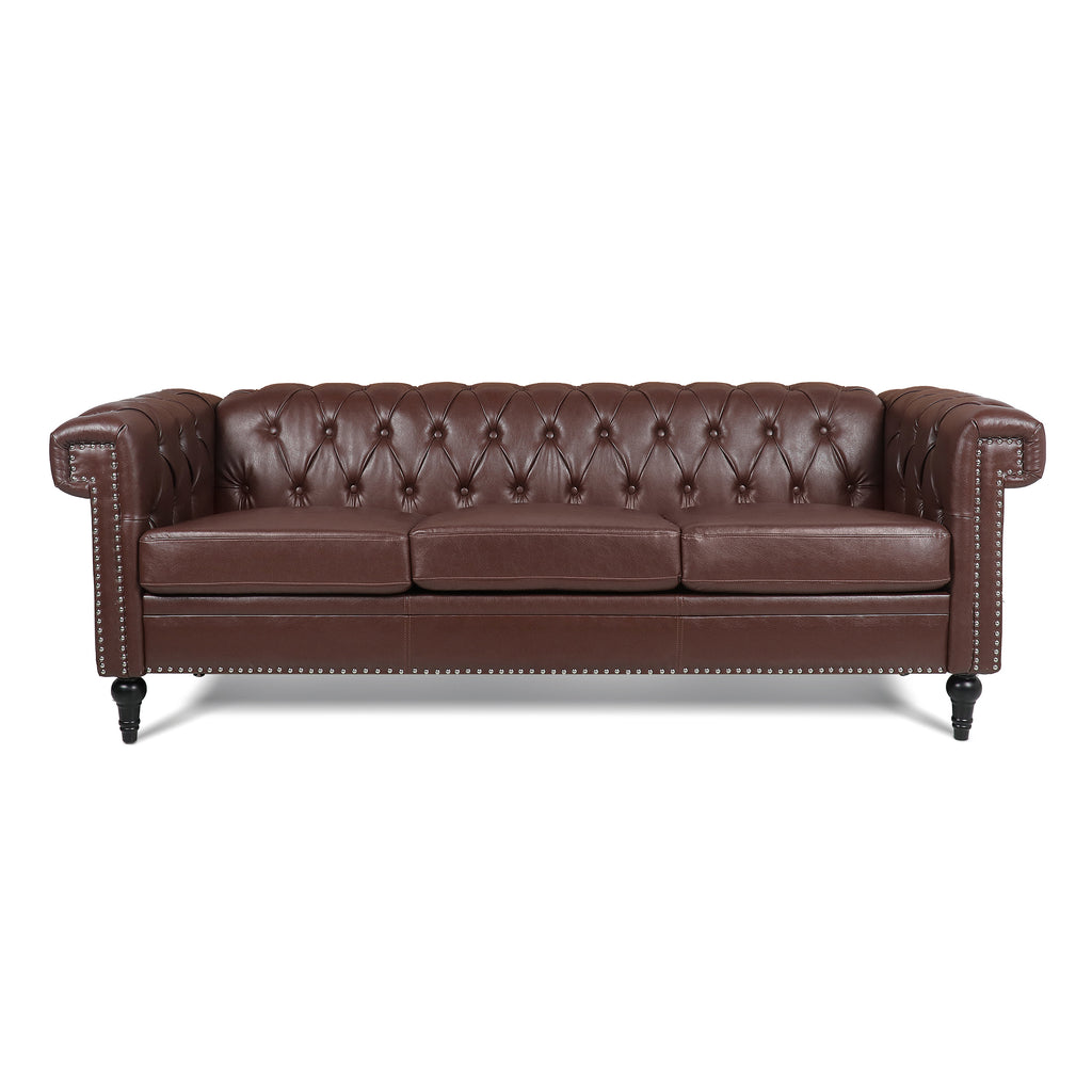 Traditional Dark Brown 3 Seater Sofa with Removable Cushions and Square Arms in PU Material