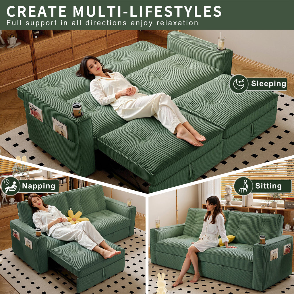 SOMNUS Multi-Functional Convertible Sofa Bed 2-in-1 Multi-Functional Sofa Bed (for Sitting & Sleeping), made of modern corduroy fabric, suitable for living rooms, bedrooms, apartments and small spaces