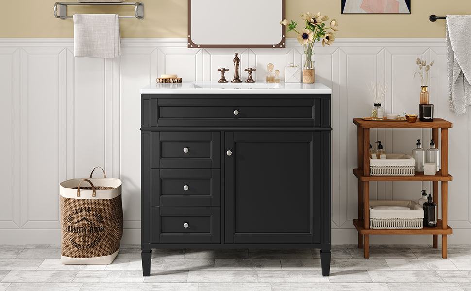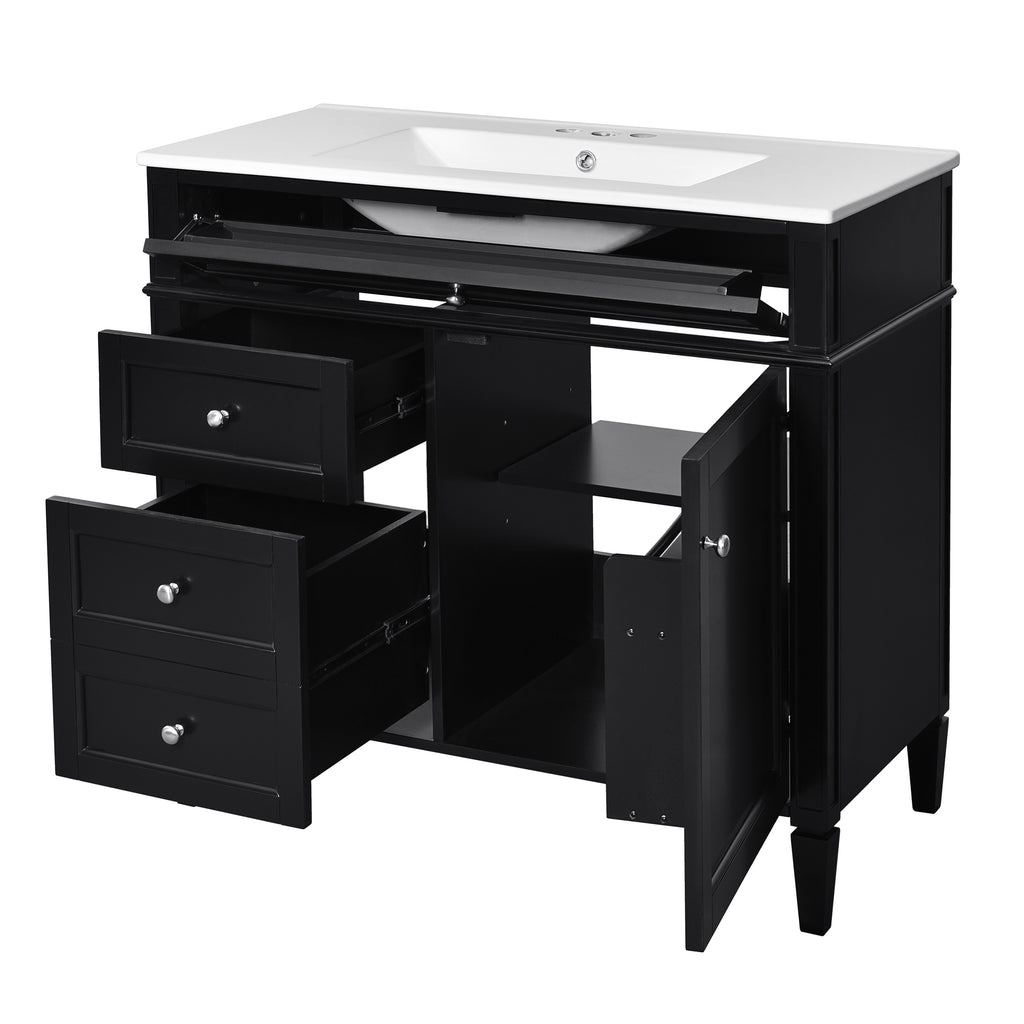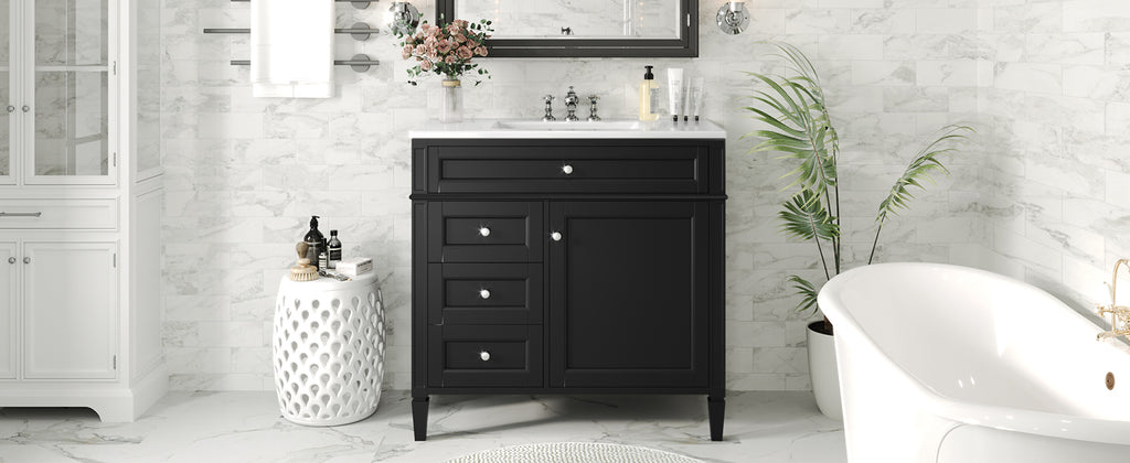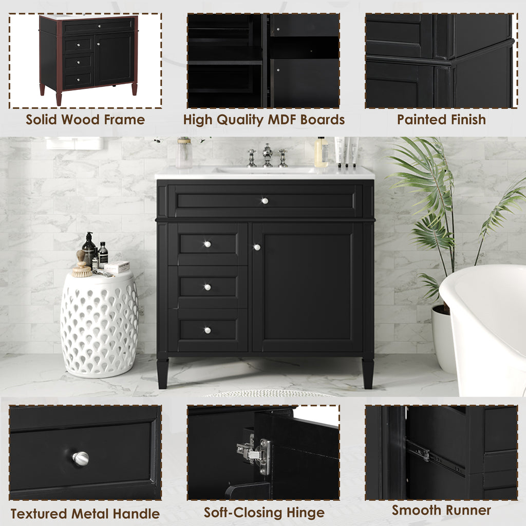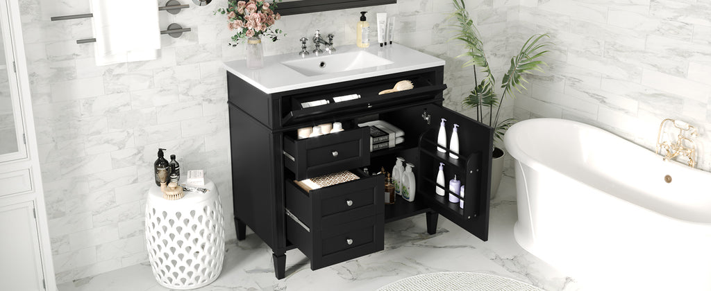 36'' Bathroom Vanity with Top Sink, Modern Bathroom Storage Cabinet with 2 Drawers and a Tip-out Drawer, Single Sink Bathroom Vanity