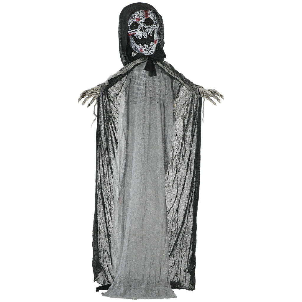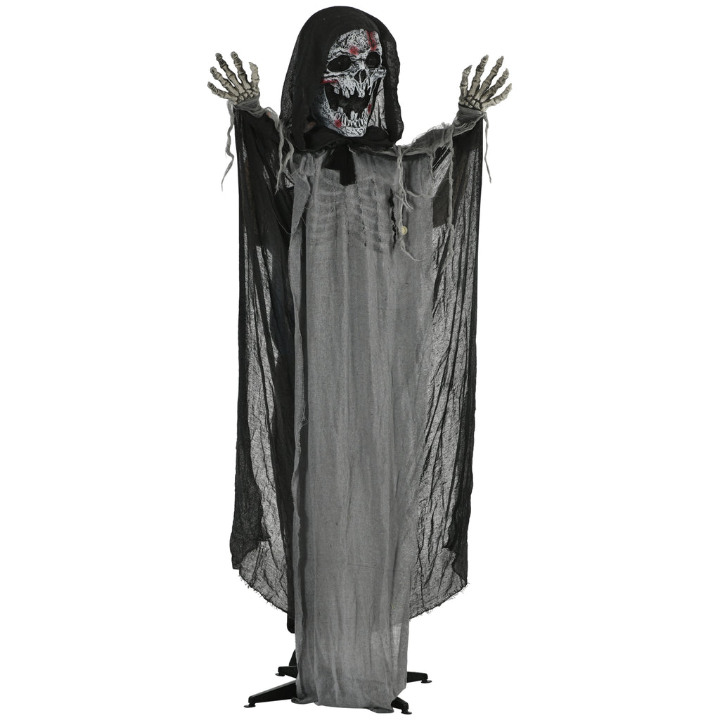 • Show Your Festiveness: Send chills down your spine. You and your neighbors are going to freak at this outdoor Halloween decoration of a wicked, hooded skeleton witch.