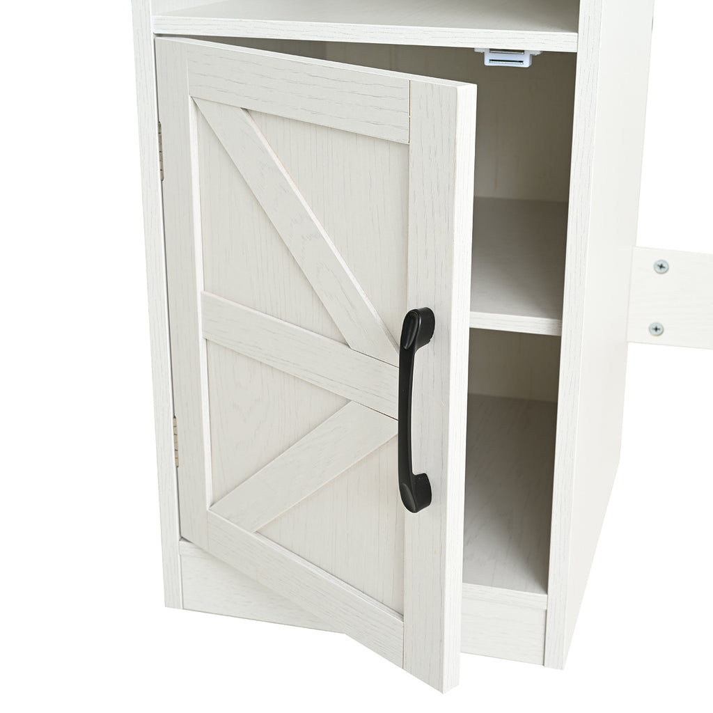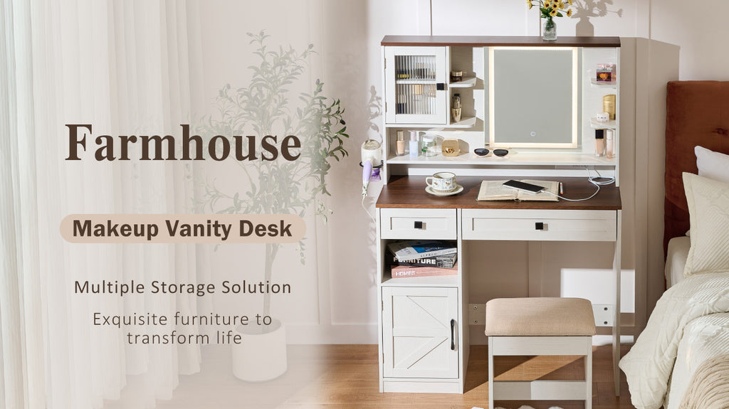 - Farmhouse and Stylish Design: This vanity desk stands out because of its rich farmhouse style. With a perfect blend of distressed white finishes with wood grain and z-brace barn door trim, the makeup vanity desk is not only robust and sturdy, but it also has farmhouse charm and adds a relaxed, earthy aesthetic to the room.
