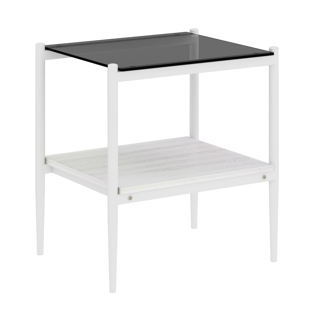 Set of 2 Rectangle End Table, Tempered Glass Tabletop with MDF layer, Modern Table for Living Room , Gray Glass