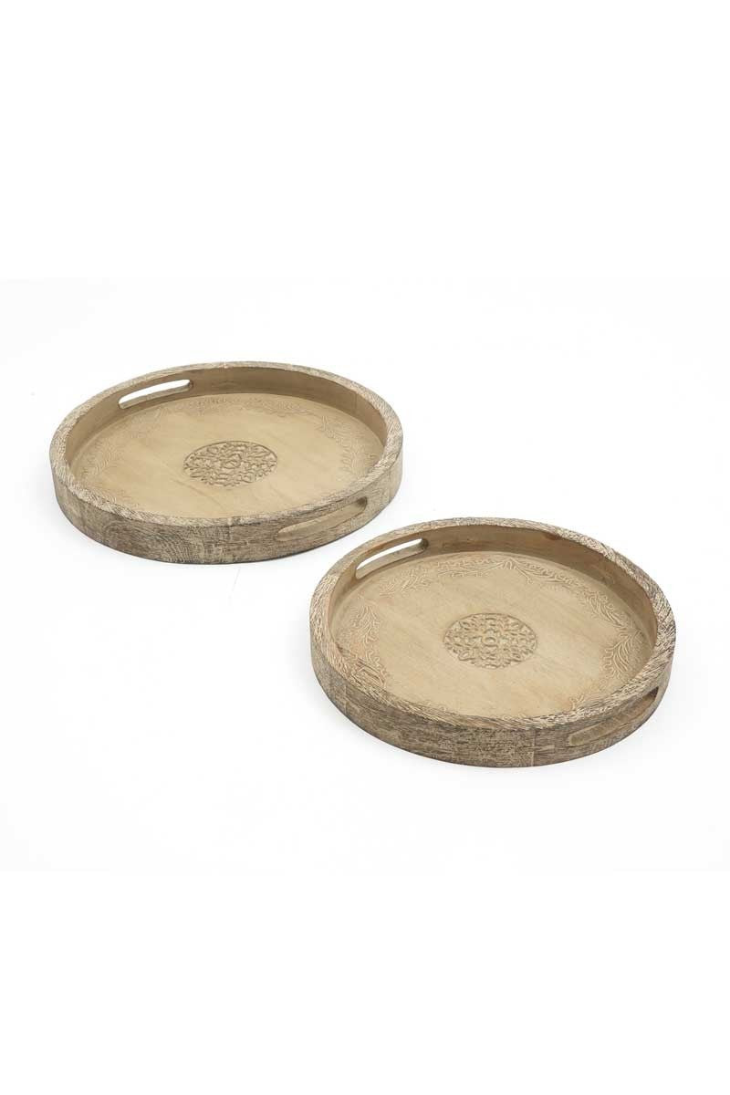 Round Mango Wood Serving Tray - 18' Rustic Brown Design for Stylish Entertaining