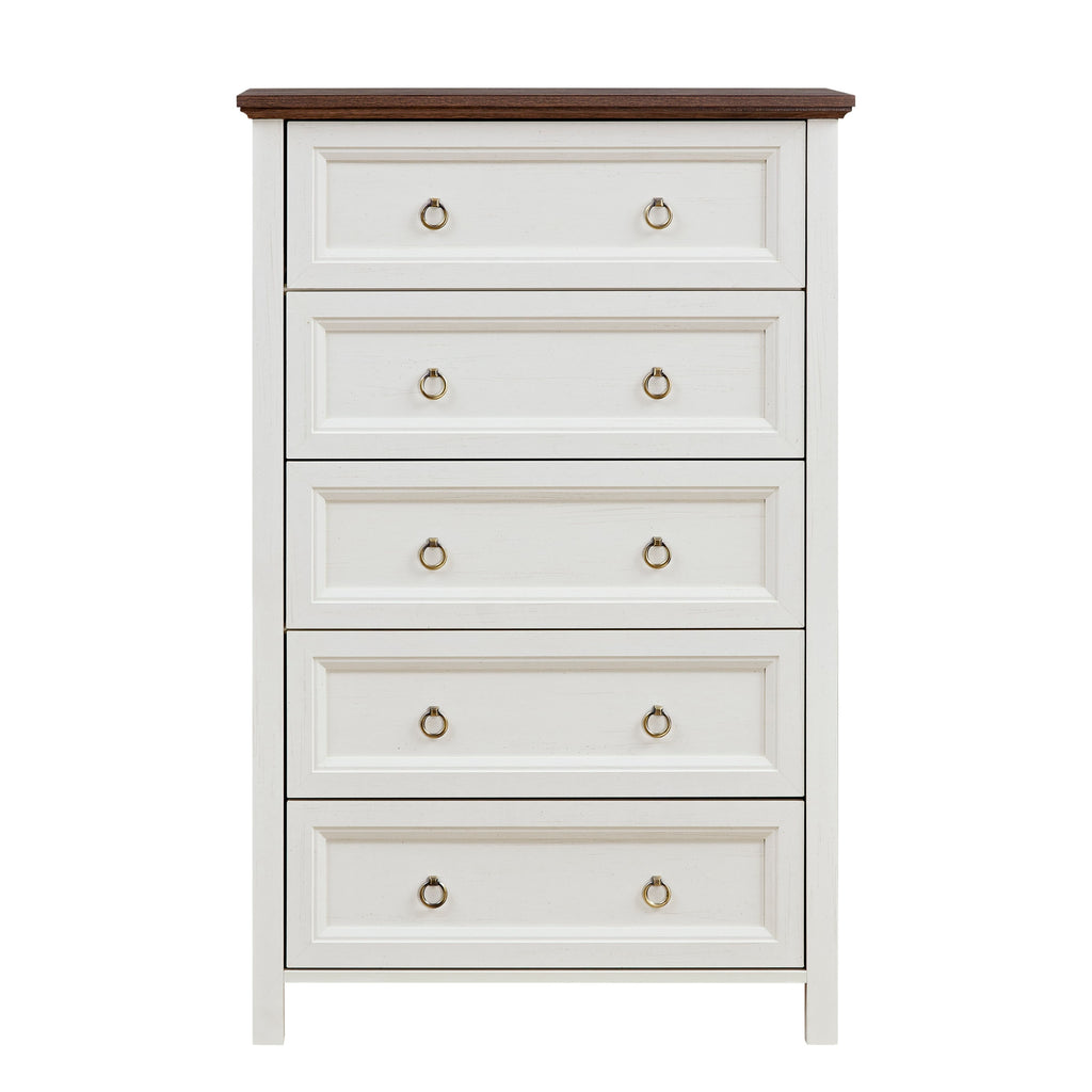 • [Metal Slides and Round Knobs 5 Drawers Slide Easily Spacious drawers provide ample storage space, ideal for organizing clothing, linens, and other essentials in any room. Its metal round drawer pulls in an antique brass tone complete the vintage French country style.