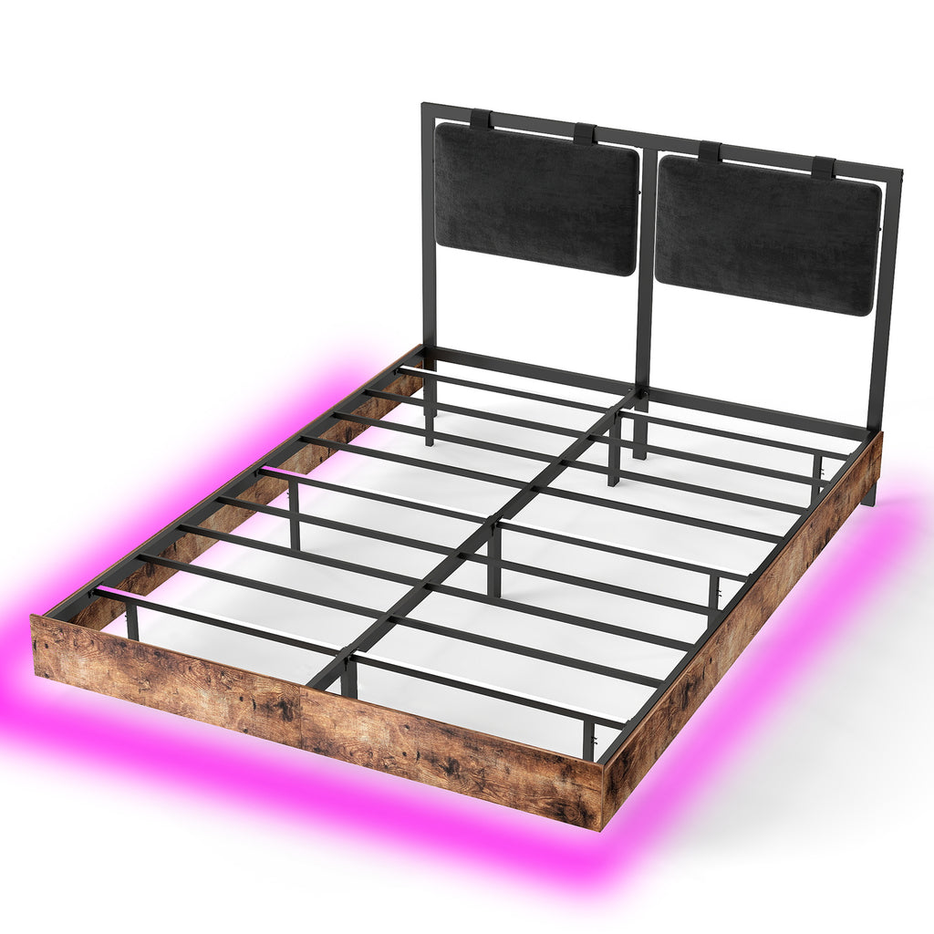 Floating Bed Frame with LED Lights, Hanging Upholstered Headboard No Box Spring Needed