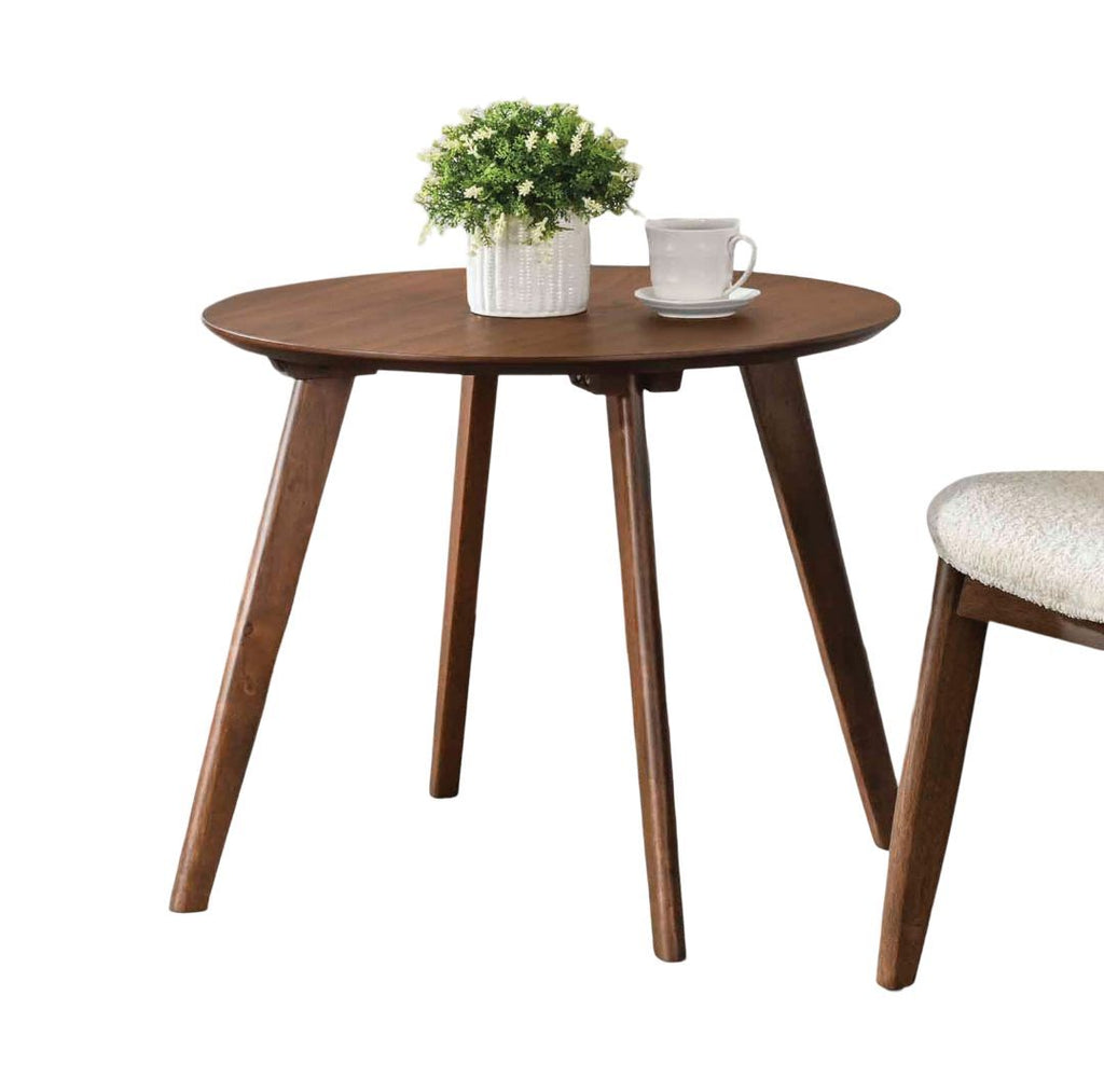 Mid‑century modern 2pc accent (Chair And Side Table) wingback chair blending boucle-style beige upholstery with walnut-finished wooden legs. Built from solid wood, engineered wood, and veneer.