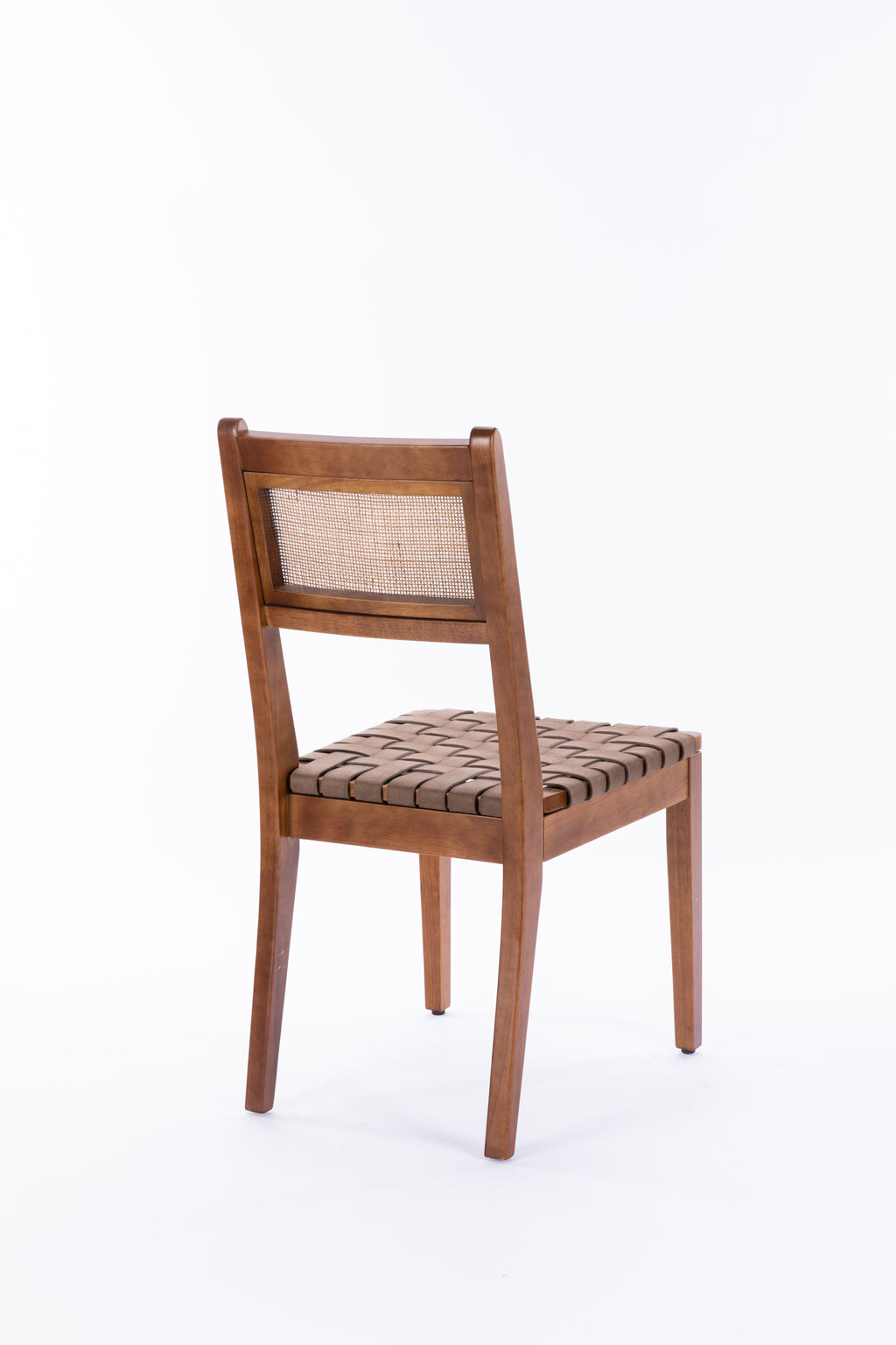 Rattan Leather Woven Strips Kitchen Dining chair,Living Room Side Chairs 18 Inch K/D set of 2
