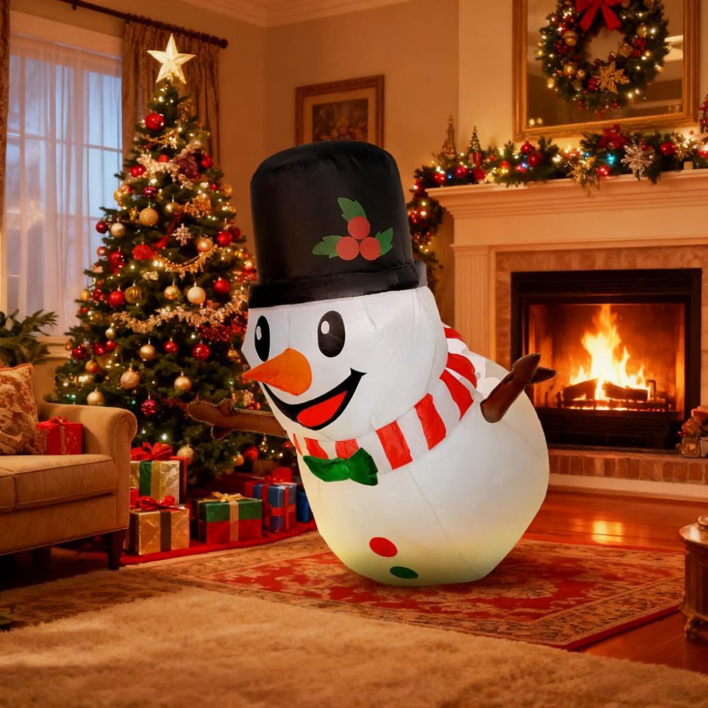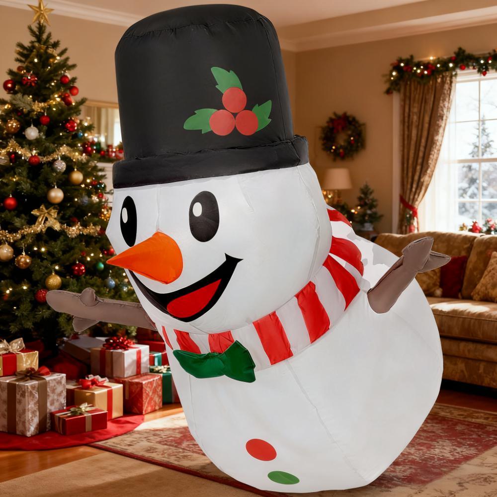 • - Show Your Festiveness: You and your neighbors will marvel at this hanging snowman Christmas inflatable. This is going to bring your outdoor holiday cheer to new heights and provide days of glad tidings to you.