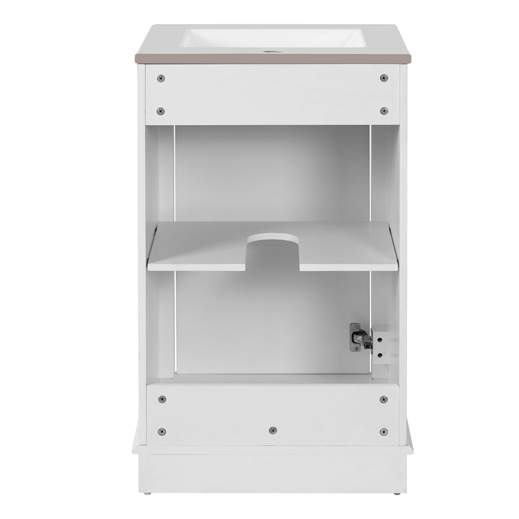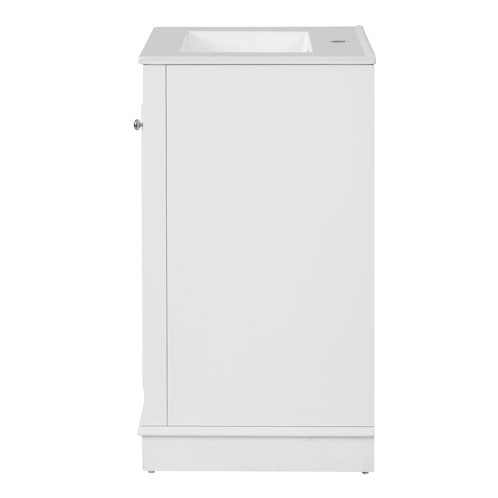 - 20.1' x 18.4' x 33.8' Shaker-style bathroom vanity for organizing your small bathroom or powder room. It offers a sleek and modern solution without sacrificing functionality and fits seamlessly into any corner or tight space.