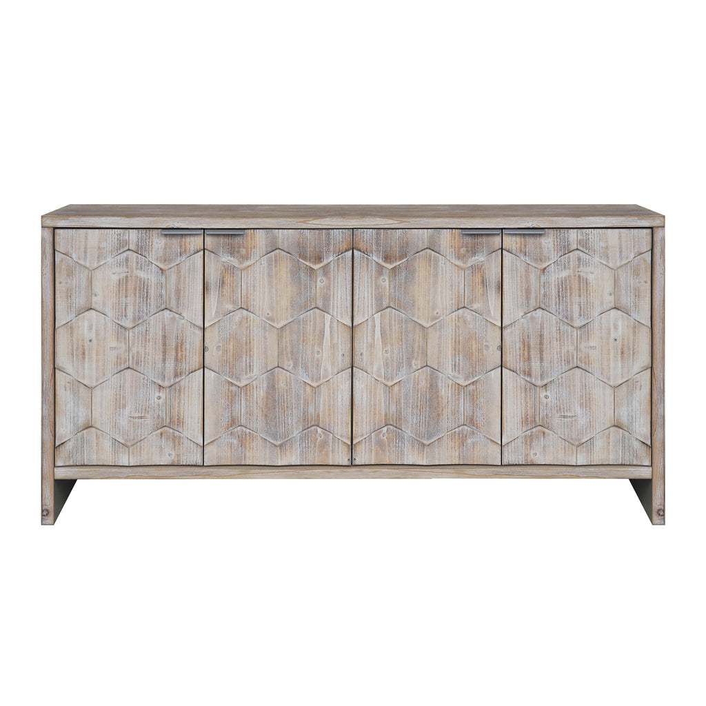 This cabinet is designed with minimalist style along with a stable structure to make a unique statement, which provides powerful practicality rather than a household adornment. With plenty of space to offer, utilize the casual four-door cabinet featuring two-tier storage to minimize clutter while keeping select essentials within easy reach, or display your favorite décor on the spacious upper counter. With decorative fluted doors add beauty and enhances the artistic sense of the entire home.
