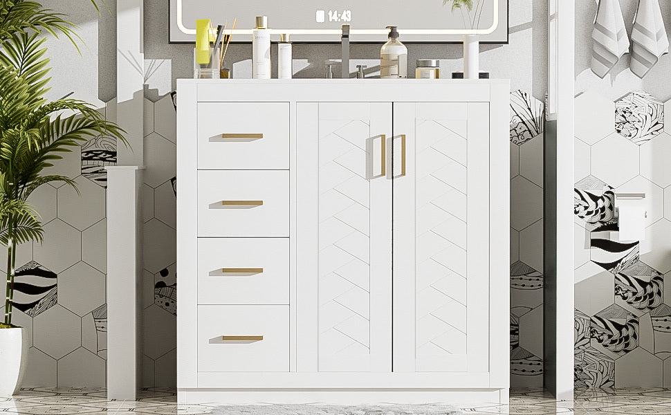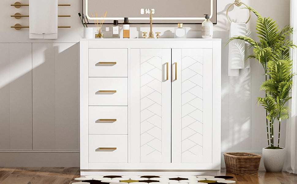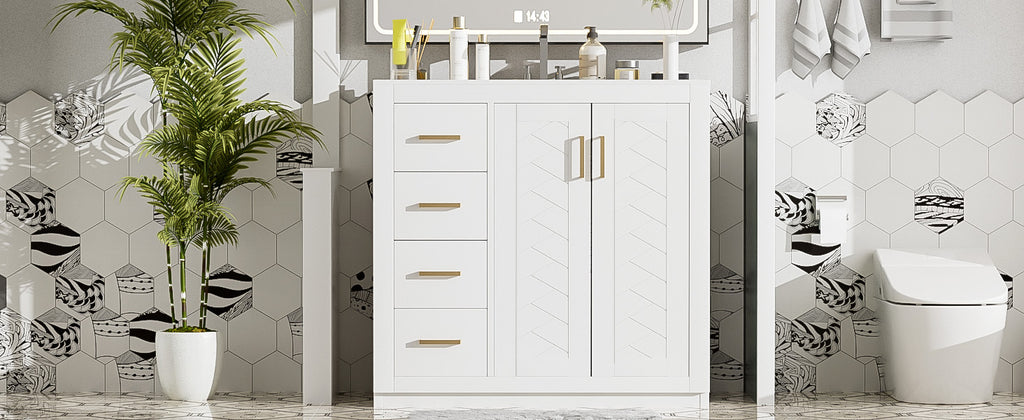 • [ Multi-Purpose Cabinet & Concealed Storage ] Are you looking for stylish and functional storage solutions for your bathroom? Our bathroom vanity provide ample space for all your toiletries and bathroom essentials. The combination of the cabinet body and the drawer perfectly stores all kinds of bathroom products and keeps the necessities away from water stains and dust. Soft-close doors and drawer fronts feature a water-resistant paint finish for durability.