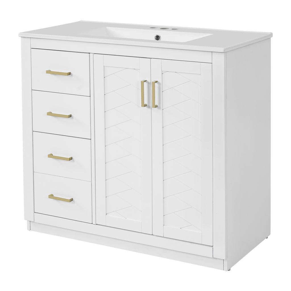 36'' Bathroom Vanity with Ceramic Sink Combo,Solid Wood Frame Bathroom Storage Cabinet