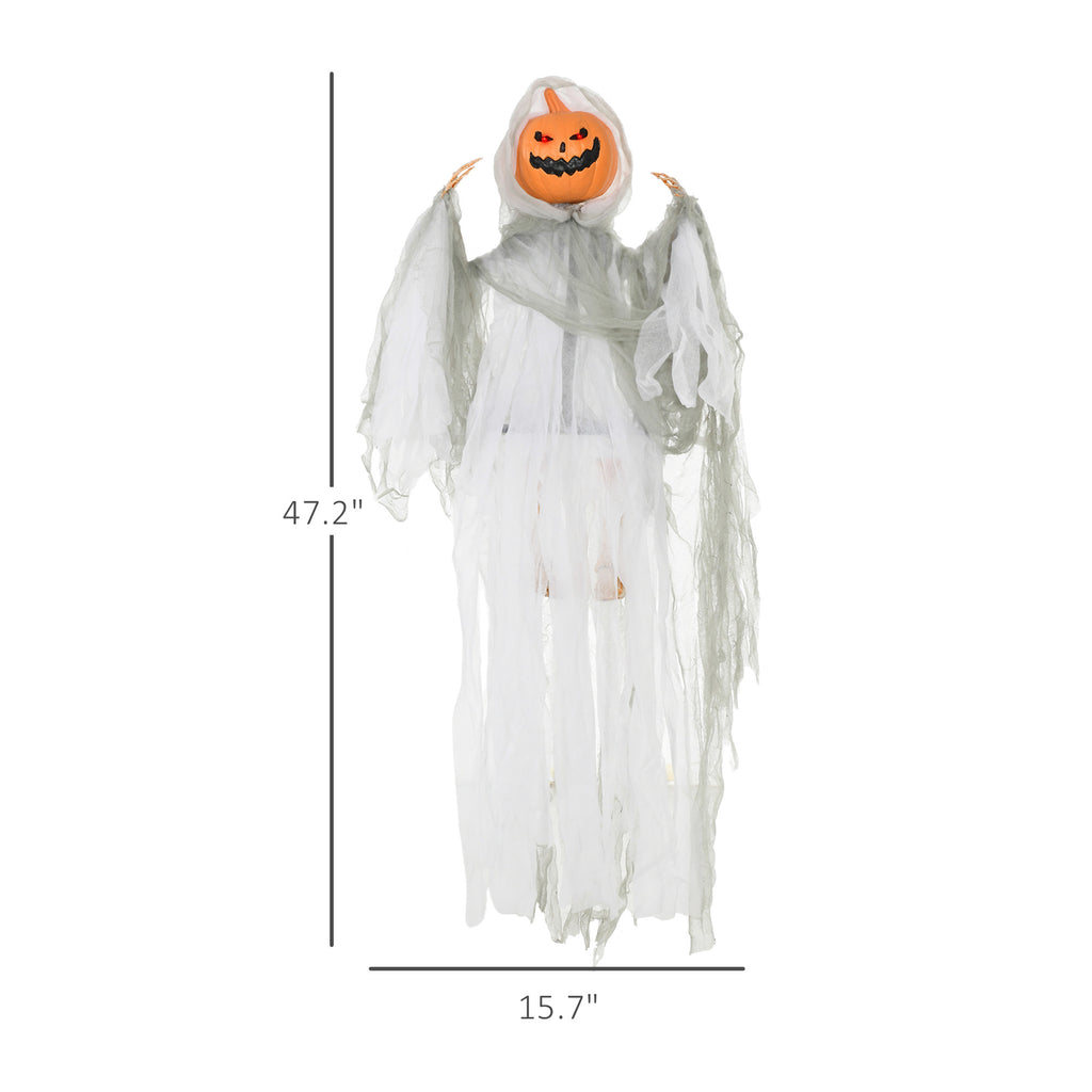 Outdoor Halloween Hanging Pumpkin Ghost w/ Light Up Eyes, Sound Activated Prop w/ Creepy Howling Sounds