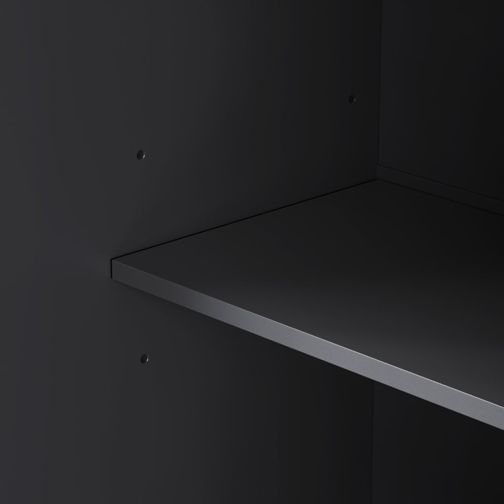 Height-adjustable shelves inside the cabinet doors provide flexibility in accommodating various kitchen items of different sizes.