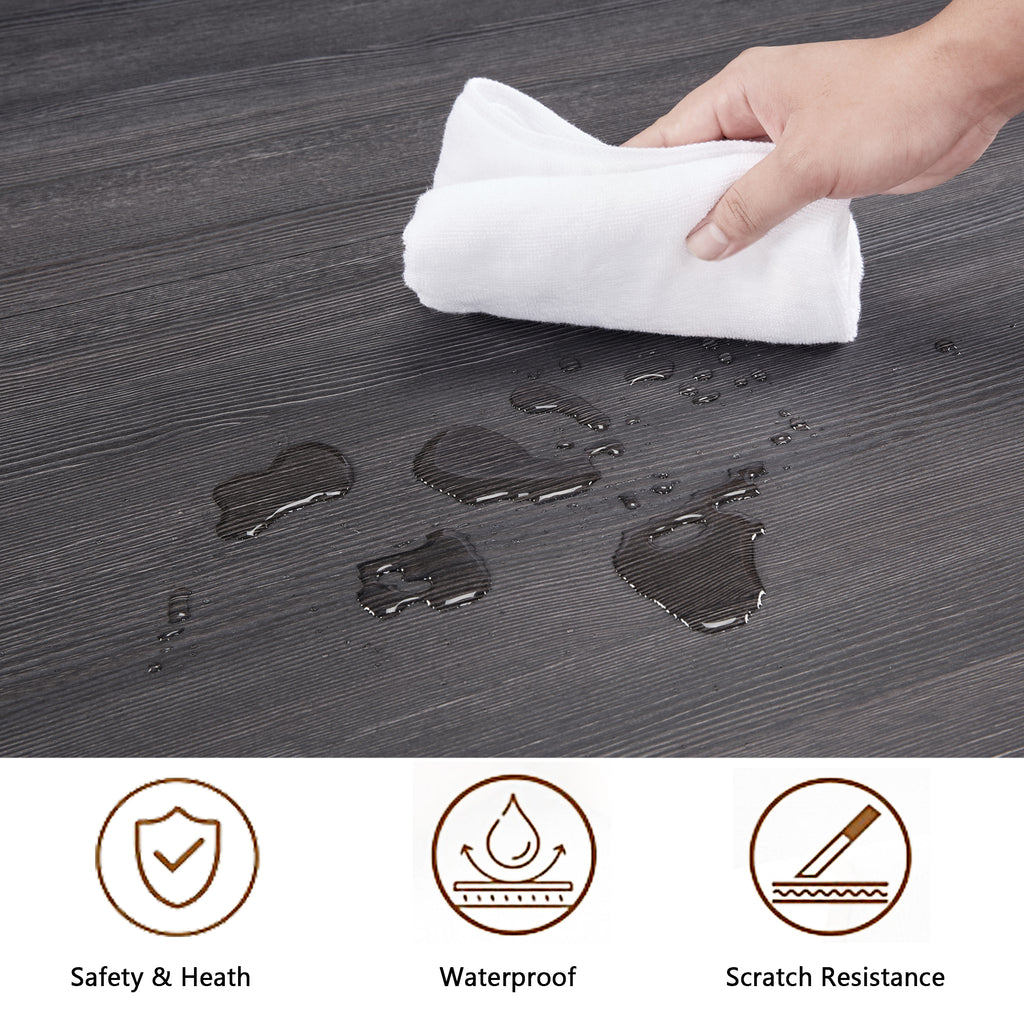 The tabletop has a fine wood-grain texture and a smooth, waterproof, scratch-resistant surface that is pleasant to the touch and easy to clean