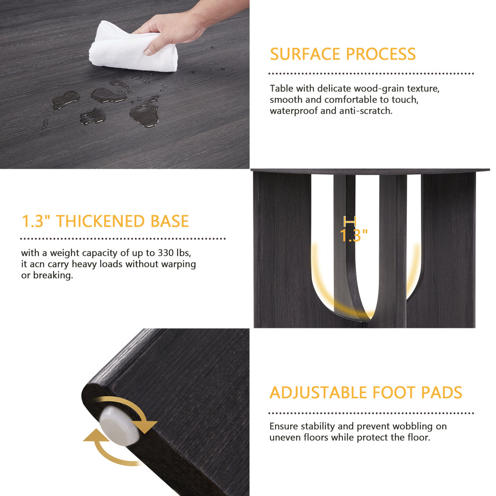 • Exceptional Stability: The tabletop is made from two substantial pieces of high-quality medium-density fibreboard, seamlessly constructed together. Reinforced joints with flat supports eliminate gaps and wobbling, ensuring a smooth, worry-free dining experience. The sturdy wooden base has an anti-slip design and adjustable feet that adapt effortlessly to uneven surfaces, ensuring the table remains firmly anchored.