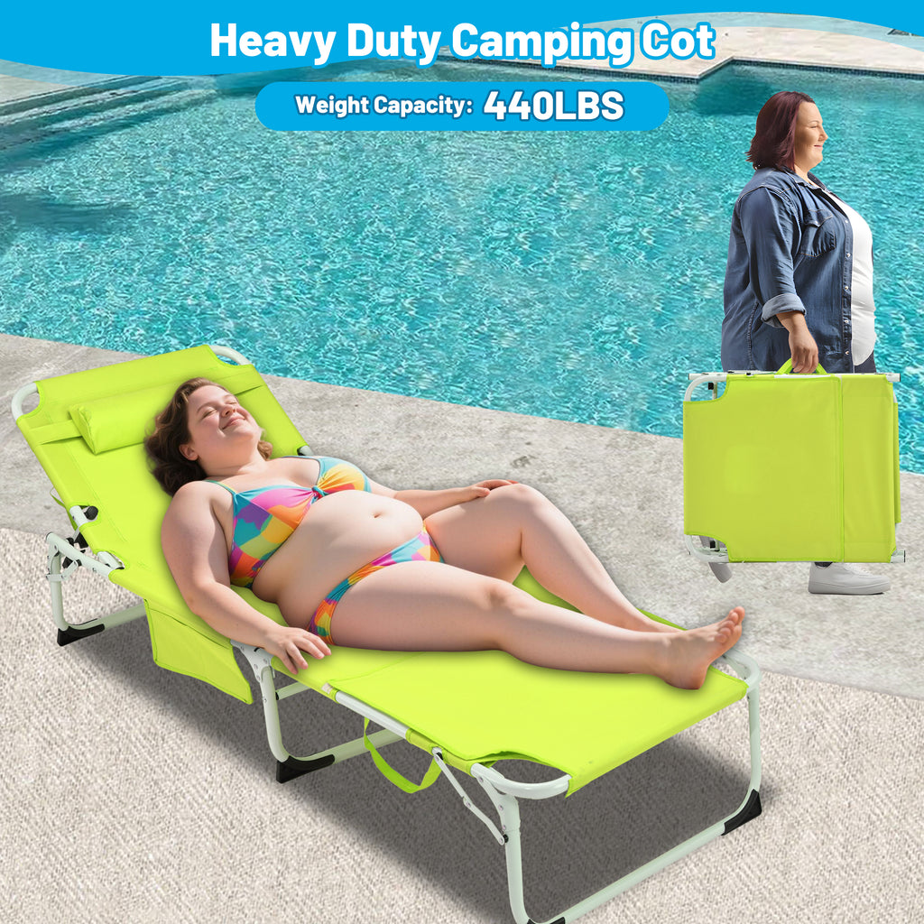 3-in-1 Heavy Duty Tanning Chair with Face Hole Adjustable 5-Position Folding Chaise Lounge Chairs for Outside Portable Lay Flat Beach Lounge Chair for Outdoor Sunbathing Patio Pool Lawn Camping Deck P