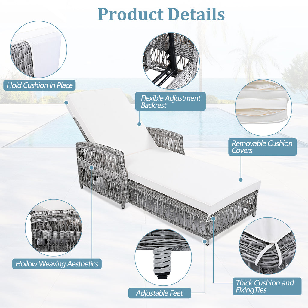 • Adjustable Backrest: This patio lounger has 4 levels of adjustability from completely flat to the highest level, giving you plenty of options to suit your relaxation needs. Whether you like reading, sunbathing, or sleeping, you can easily find the most comfortable angle.