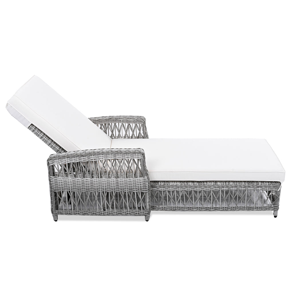 • Long-Lasting Elegance: Featuring beautifully woven gray PE rattan, the openwork design adds a touch of elegance and charm. The rattan material is resistant to fading, ensuring the lounge chairs maintain their beauty for years.