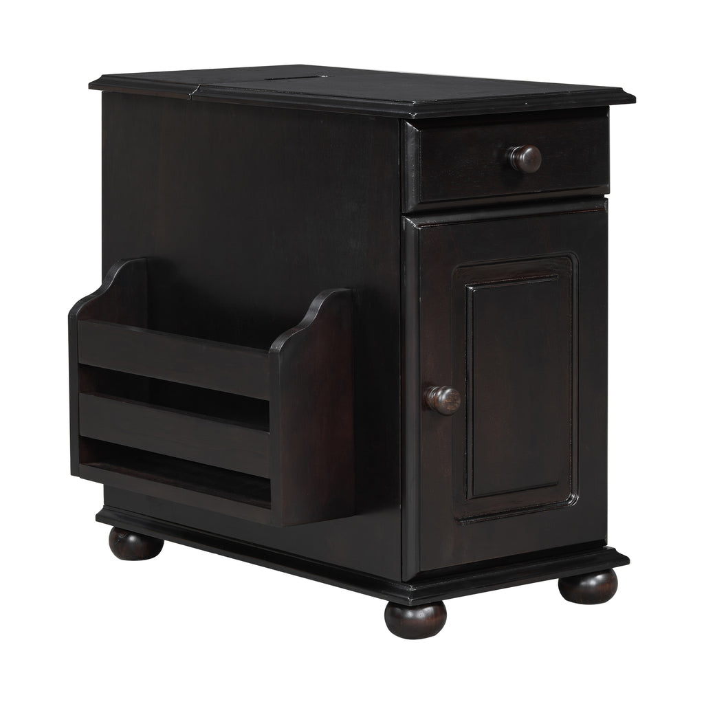 U-Can Vintage End Table Flip Top Side Table with USB Ports, One Multifunctional Drawer with cup holders, Sofa Couch Table with Bookshelf for Living room and Small Space