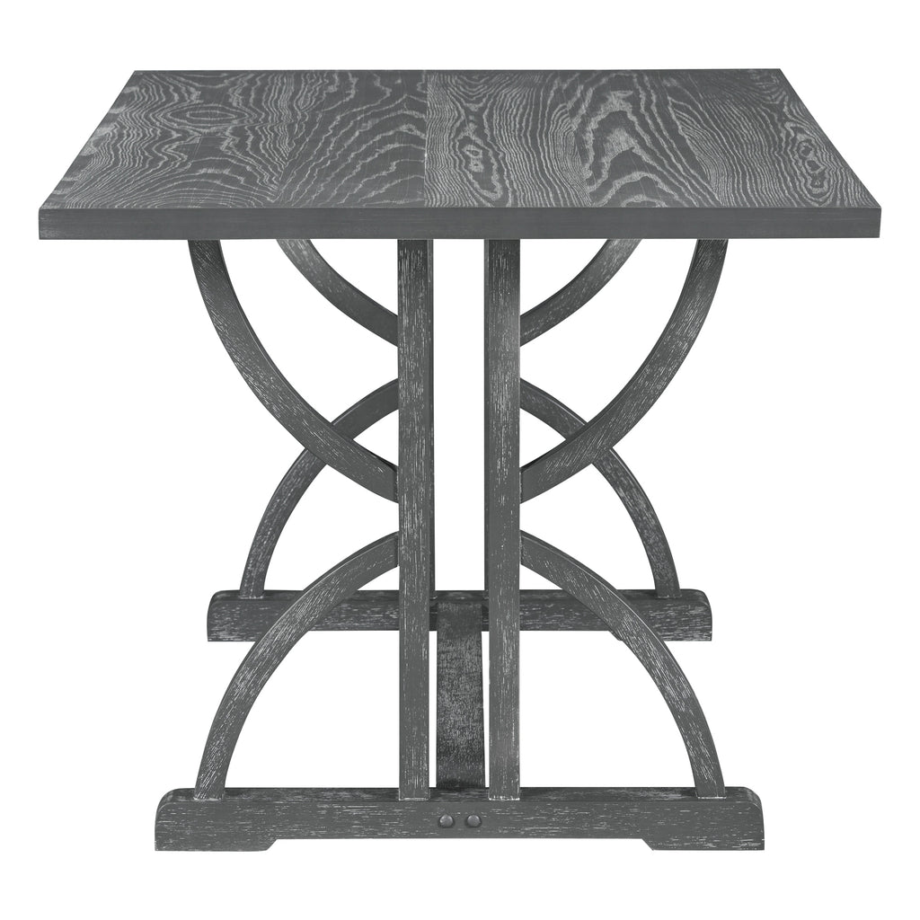 - The 6-piece dining table set with its retro and elegant appearance will definitively redefine your dining and living space. The tabletop is in a simple rectangular design, and its combination of rigidity and softness makes the artistic sense stronger. Its timeworn planked ash top creates a unique two-tone contrast, while special designed legs and stretcher provide a sturdy foundation. Four solid wood dining chairs and one matching dining bench complete this excellent combo item.