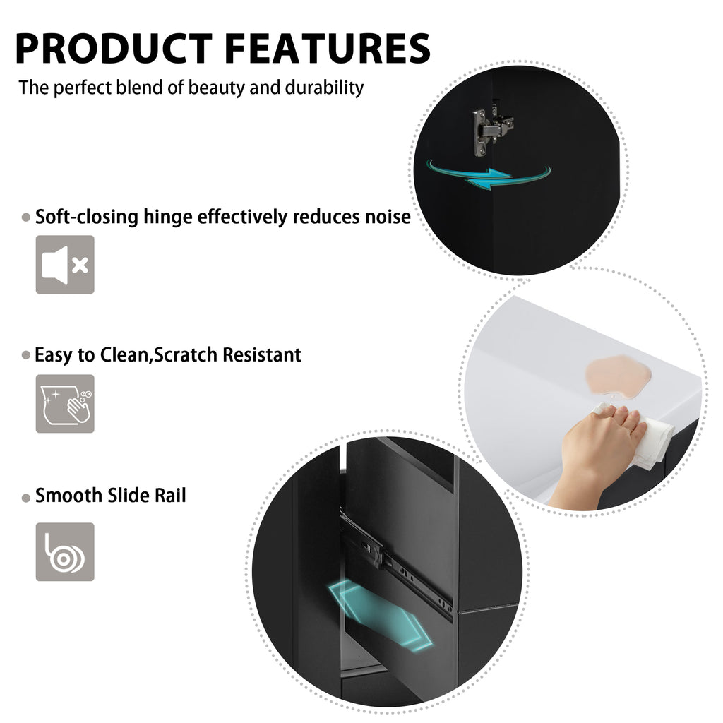• [ Multi-Purpose Cabinet & Concealed Storage ] Are you looking for stylish and functional storage solutions for your bathroom? Our bathroom vanity provide ample space for all your toiletries and bathroom essentials. The combination of the cabinet body and the drawer perfectly stores all kinds of bathroom products and keeps the necessities away from water stains and dust. Soft-close doors and drawer fronts feature a water-resistant paint finish for durability.