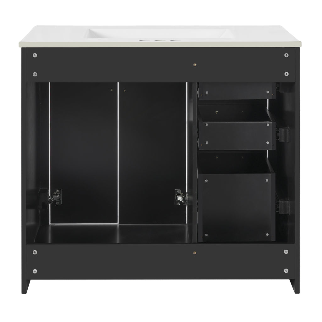 36'' Bathroom Vanity with Ceramic Sink Combo, Solid Wood Frame Bathroom Storage Cabinet, Freestanding Vanity Set with 3 Drawers& Soft Closing Doors