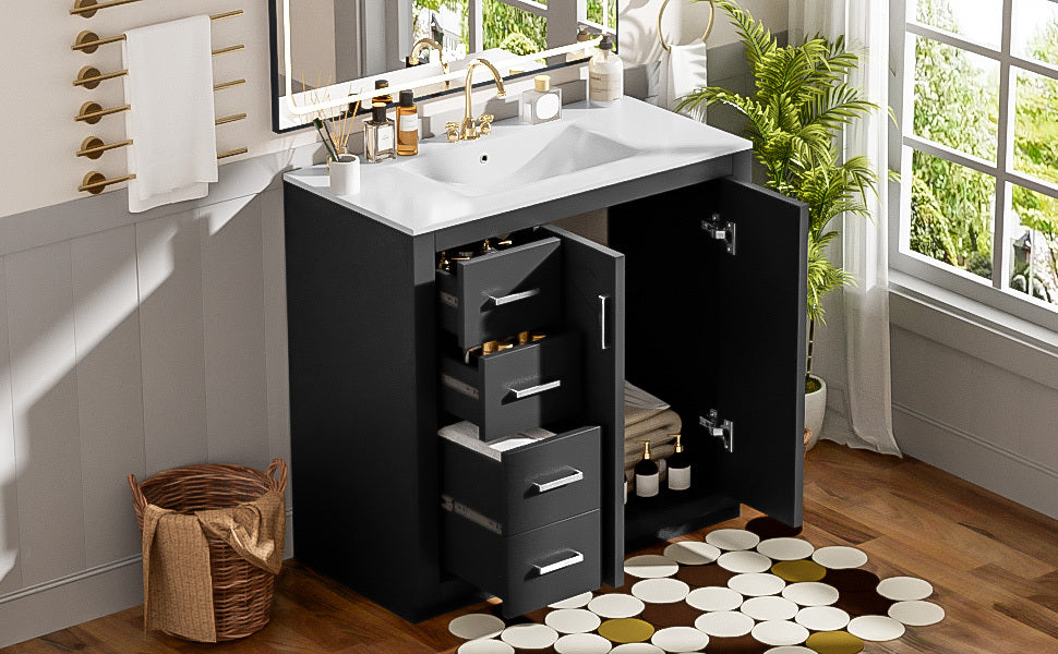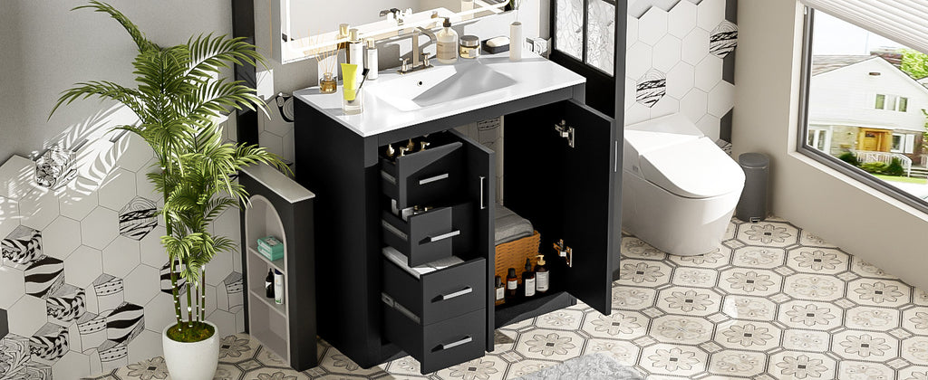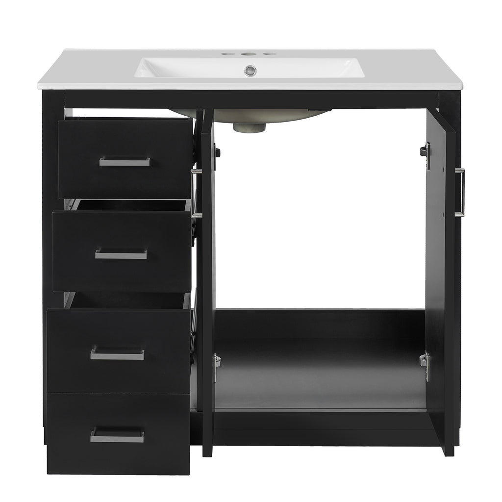 36'' Bathroom Vanity with Ceramic Sink Combo,Solid Wood Frame Bathroom Storage Cabinet