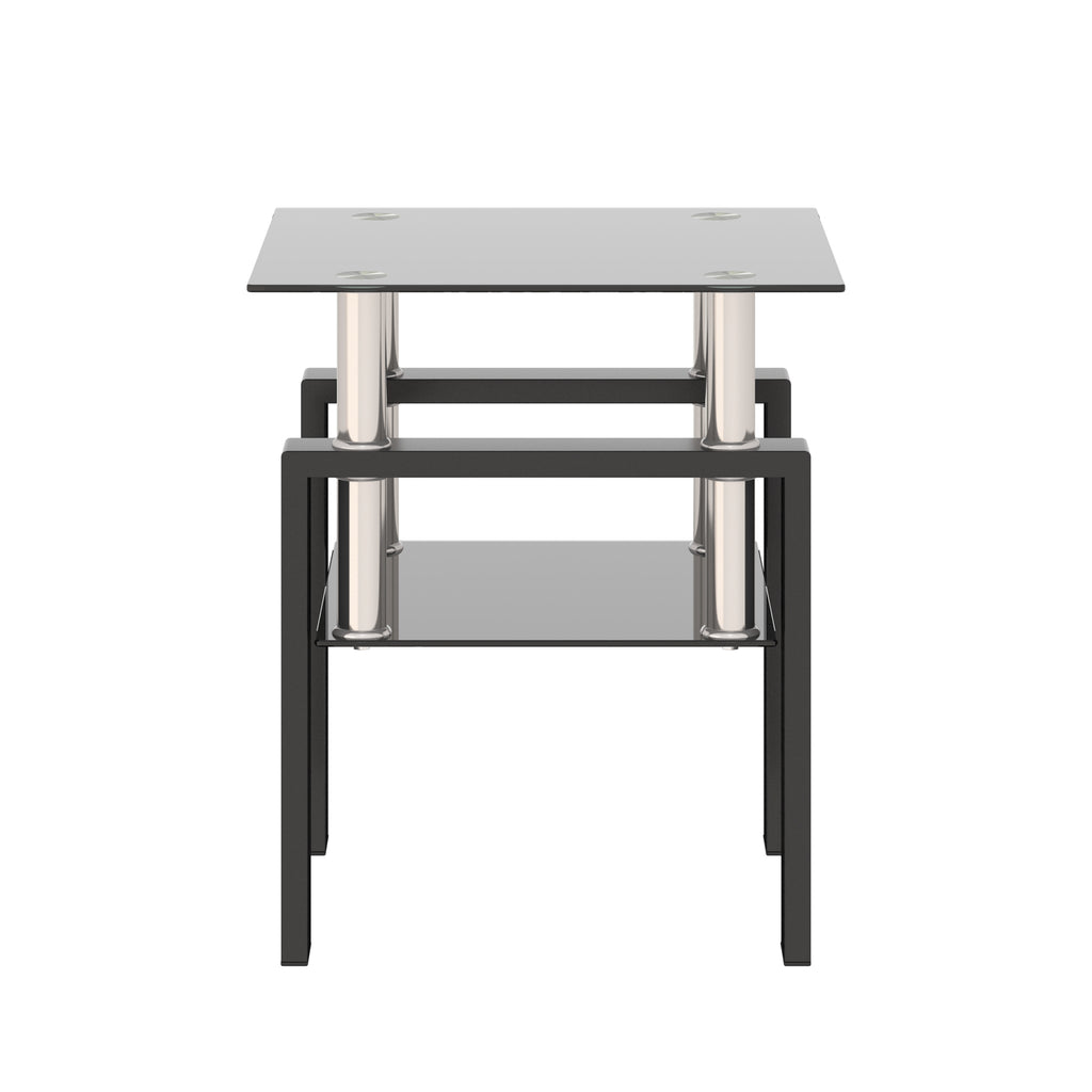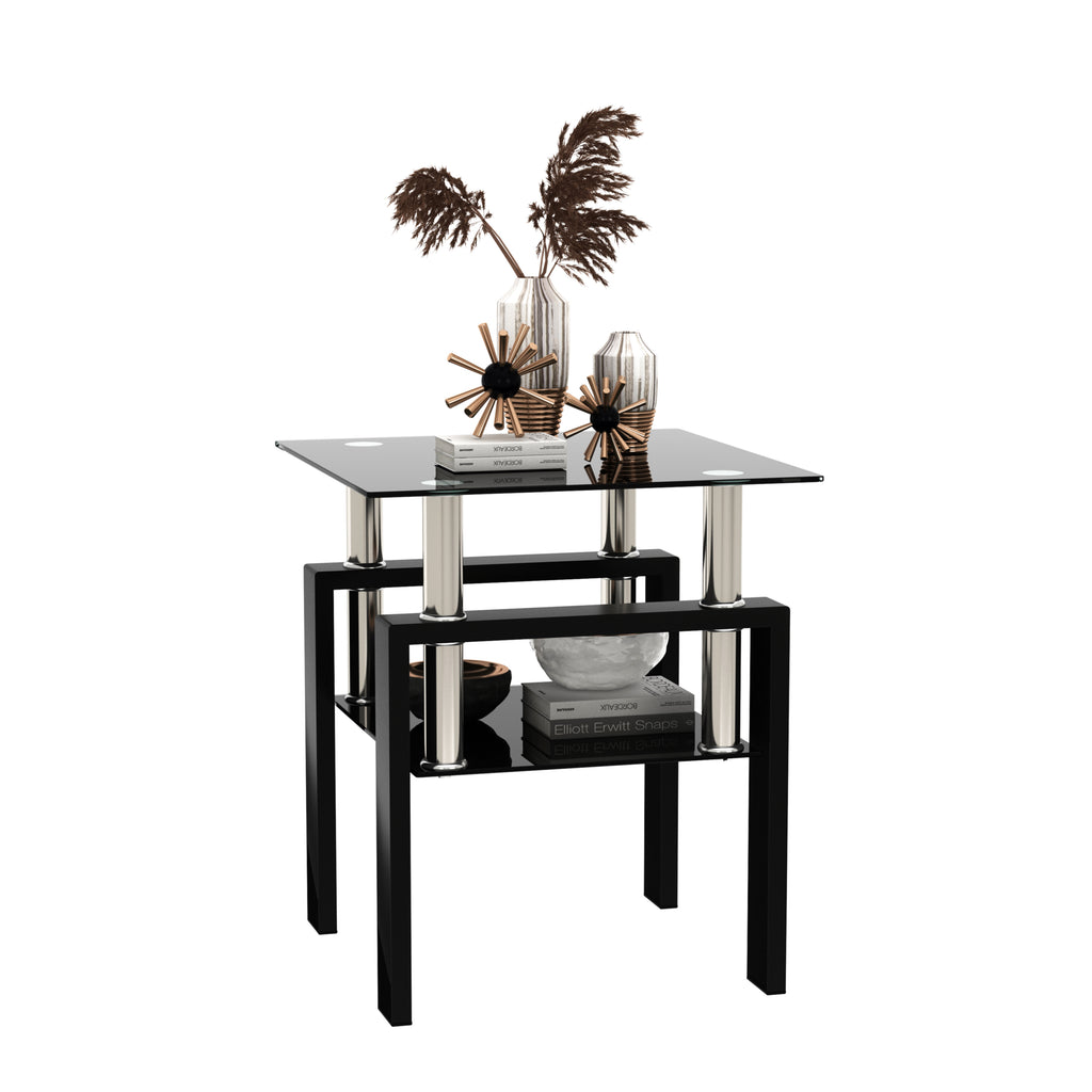 Modern Tempered Glass Tea Table Coffee Table End Table, Black, Square, 1-Piece for Living Room