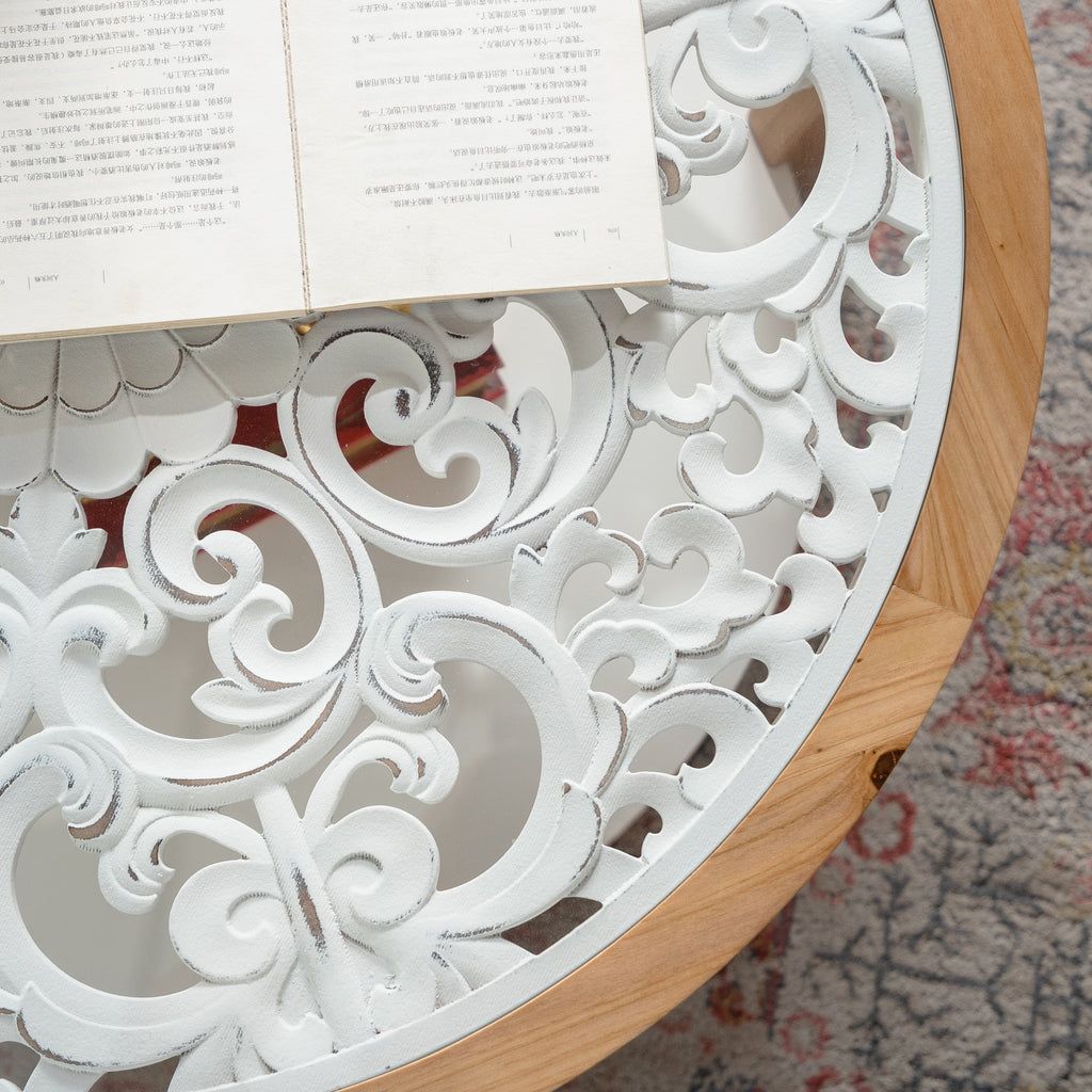 • 【Multiple selections】The round coffee table is made of solid wood and tempered glass and designed with 2 tabletops to meet your various life needs: Carved wood top or glass top covers Carved wood, the glass table top is designed to be removable, which is easy for users to clean and maintain, and it is also easy to replace or upgrade the table top material when needed, increasing the flexibility of furniture use.