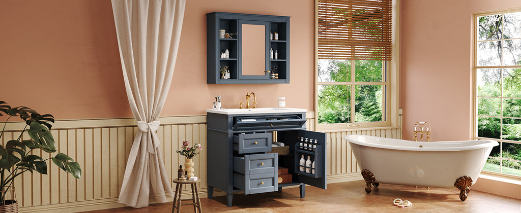 36'' Bathroom Vanity with Medicine Cabinet, Modern Bathroom Storage Cabinet with 2 Soft Closing Doors and 4 Drawers, Single Sink Bathroom Vanity