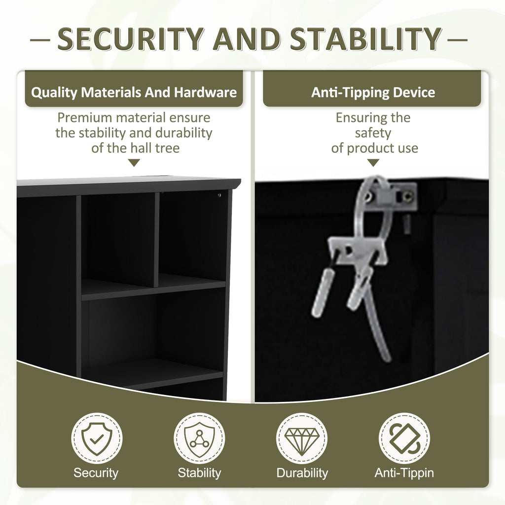 - Stable and durable: Made of MDF and particleboard, this hall tree comes with quality hardware to ensure long-lasting use. In addition, the hall tree is equipped with an anti-tipping device to ensure safety.