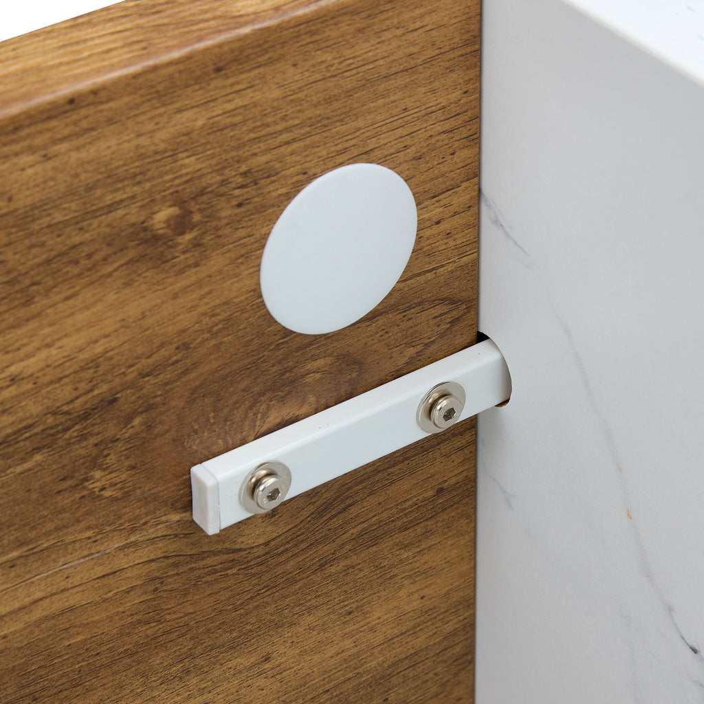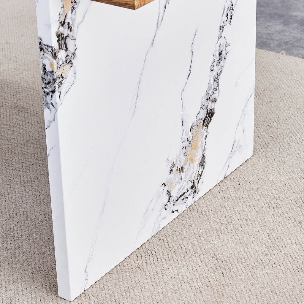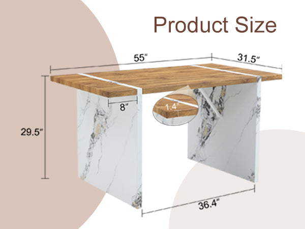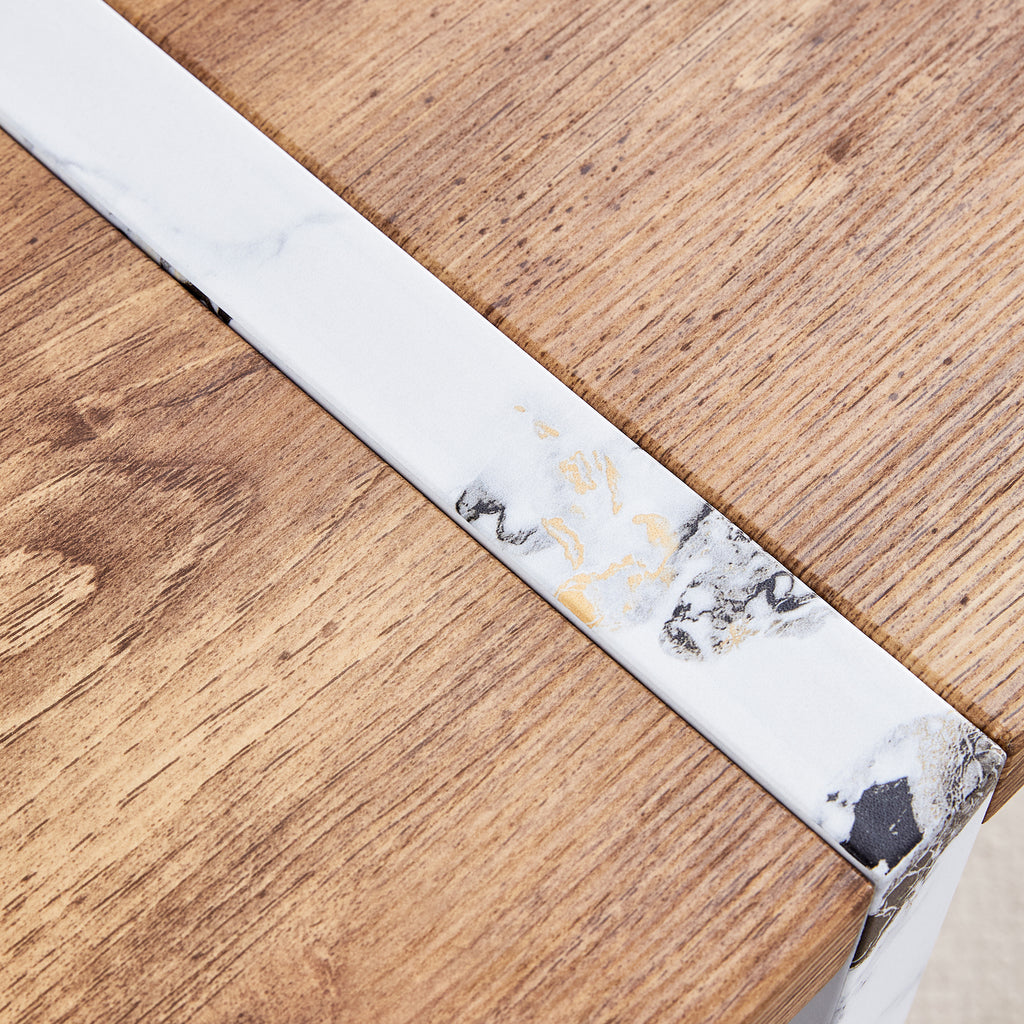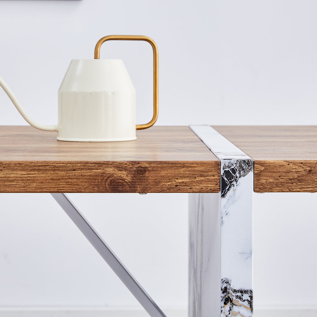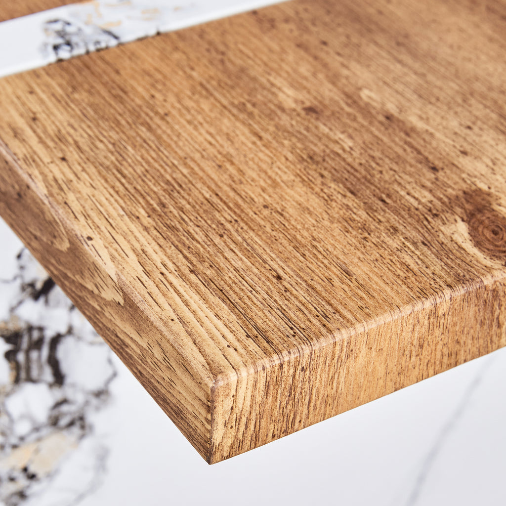 Farmhouse-Meets-Elegance Design – Features a warm wood veneer top paired with sleek marble-style legs, blending rustic charm with modern sophistication