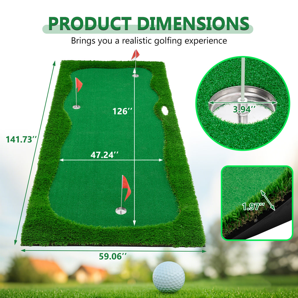 12x5 FT Golf Putting Green, Golf Training Mat with High-quality Turf, 3 Holes, 3 Flags and Cups for Indoor Outdoor