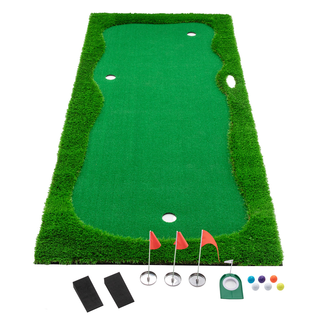 • The golf putting green comes with 3 golf holes and is also equipped with a stainless steel cup and flagpole to improve accuracy and precision when hitting, giving you a realistic golf experience.