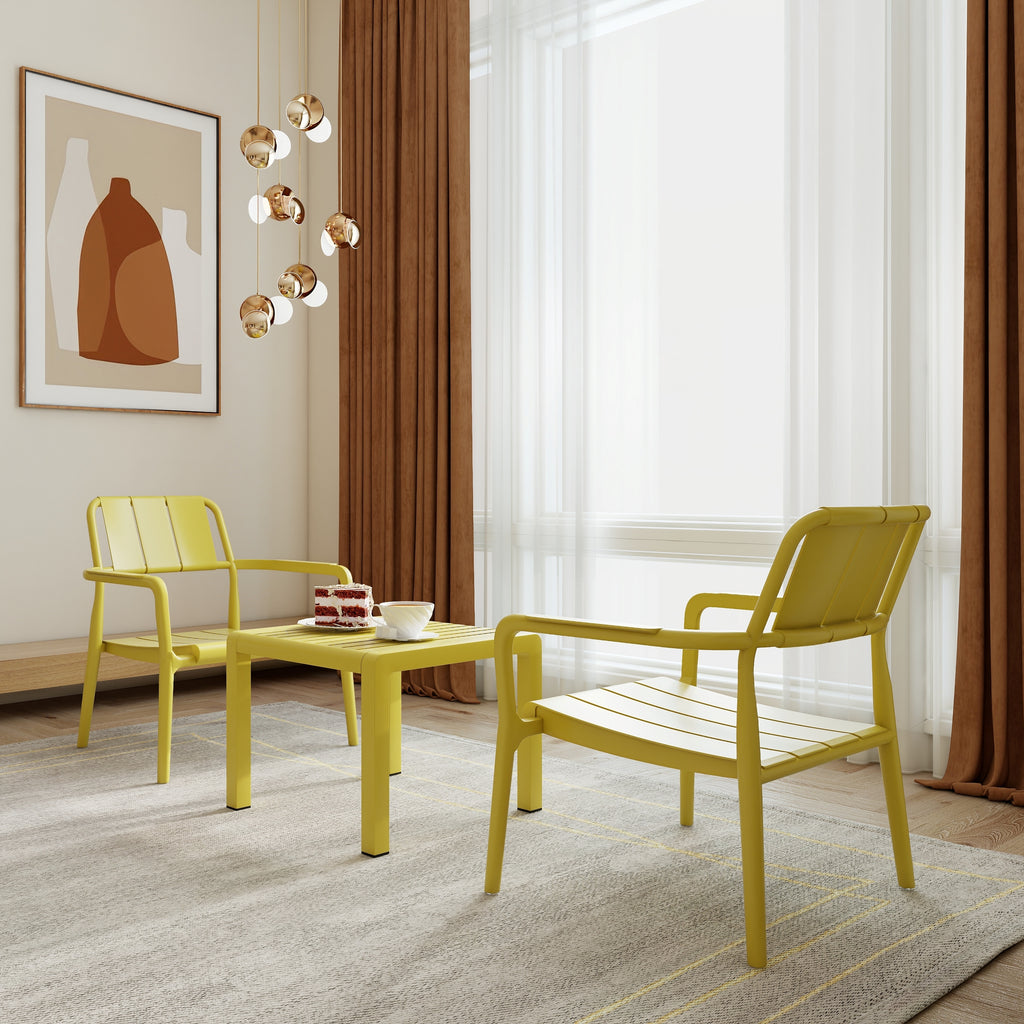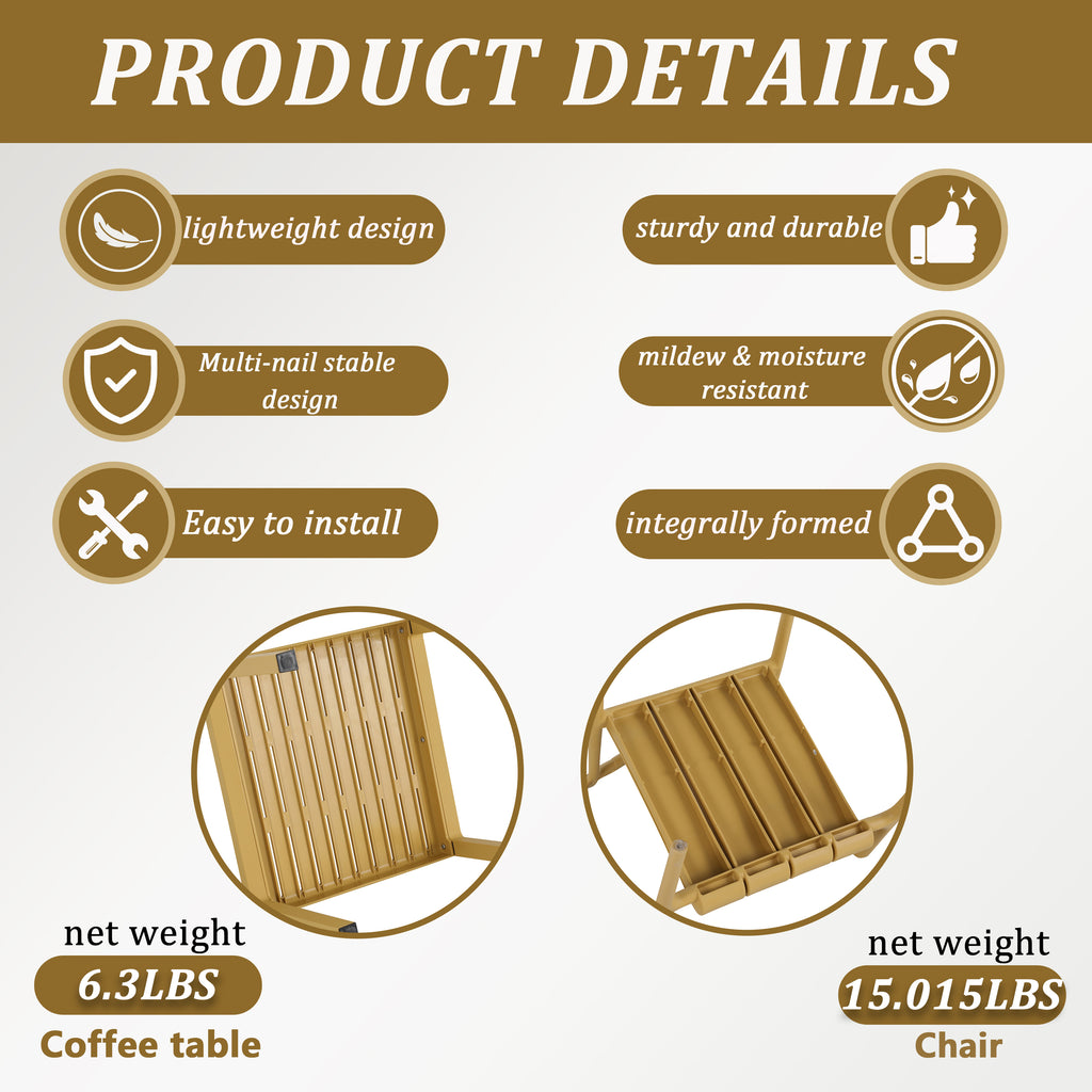 • Ergonomic Comfort for Long-Lasting Relaxation: Low-Profile Relaxation: Slightly lower than standard dining chairs, these seats pair perfectly with the compact coffee table—ideal for sipping coffee, reading, or casual conversations; Versatile Use: Designed for cozy indoor and outdoor settings, Ideal for backyards, cafes, poolsides, camping, or apartment balconies.
