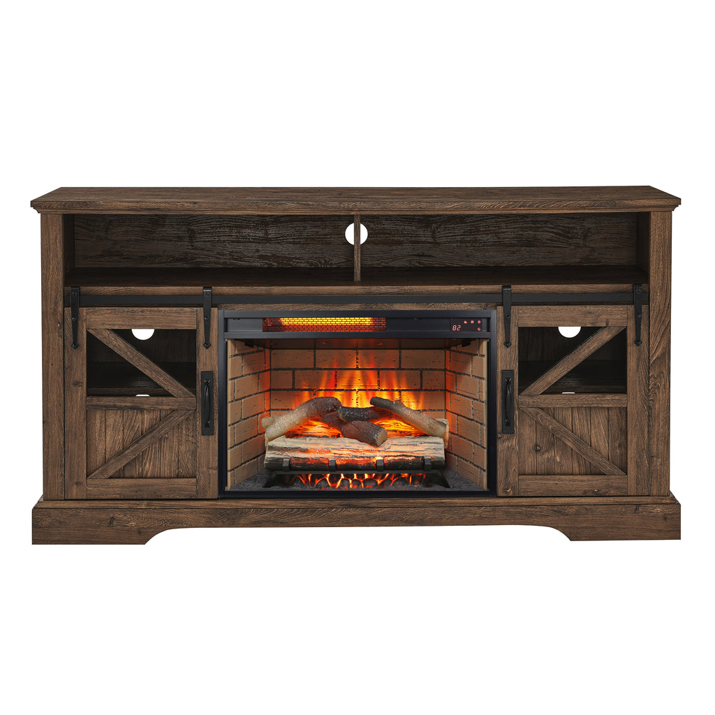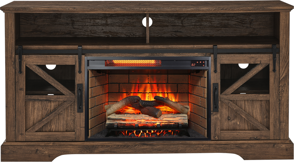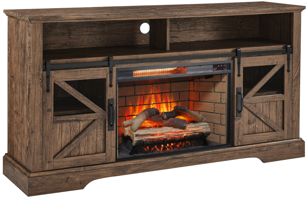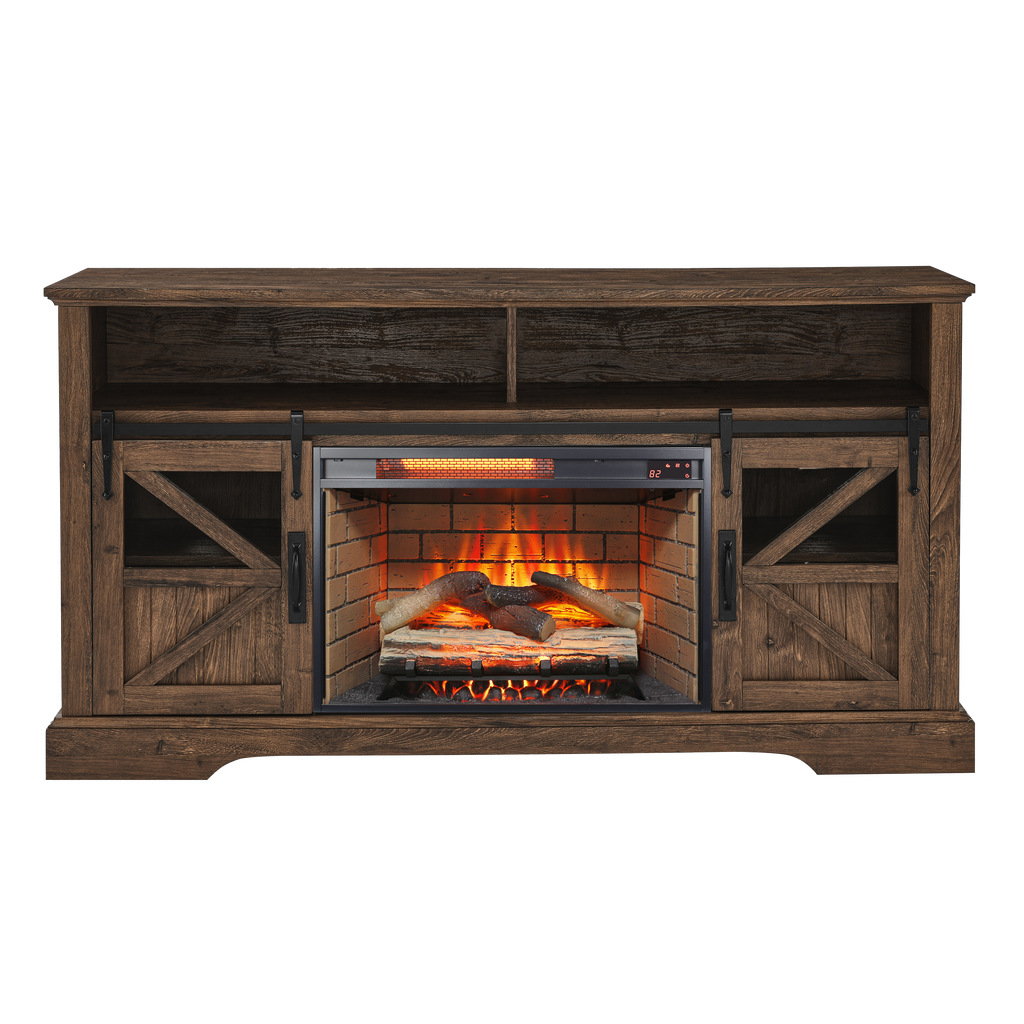 60 Inch Electric Fireplace Entertainment Center With Door Sensor-Reclaimed Barnwood Color