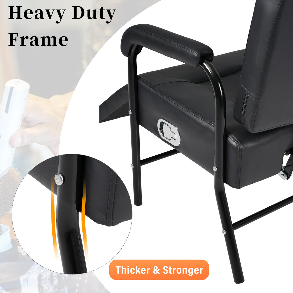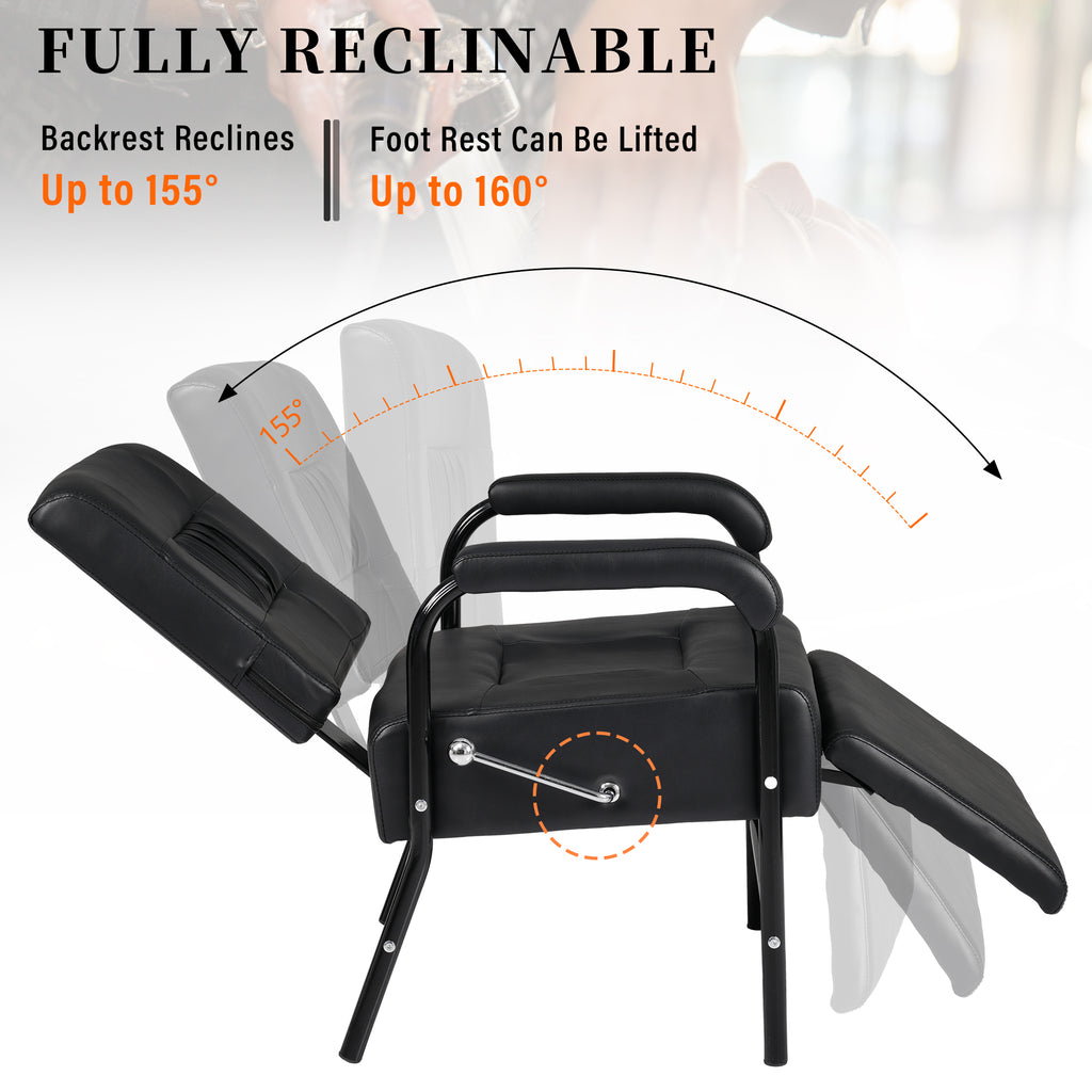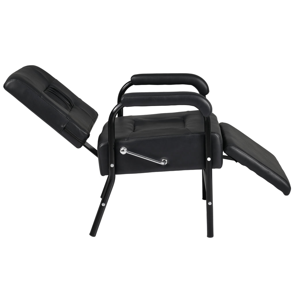 • Multiple Function: With an extra thick padded seat and back, clients can recline in comfort.The metal button on the left is used for backrest adjustment, and the lever on the right is used for footrest adjustment. It can be used for various purposes such as shampoo chair, waiting rest chair and leisure chair. The backrest can be adjusted up to 155° and the footrest can be adjusted up to 160°.