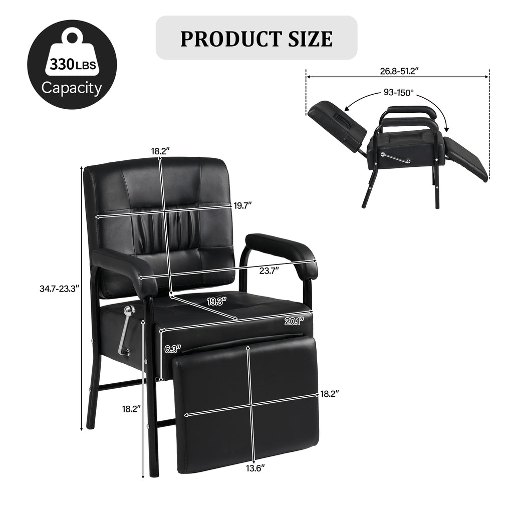 Shampoo Chair with Footrest for Salon, Reclining Salon Chair for Barber & Hair Stylist Chair, Controled Recline Spa Beauty Equipment, Black