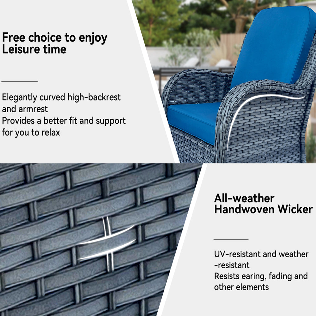 • BUILT-TO-LAST MATERIAL: The outdoor swivel rocker chair is crafted with the finest materials, including all-weather wicker and aluminum frames, to withstand the elements year after year without worrying about repairs or replacement!