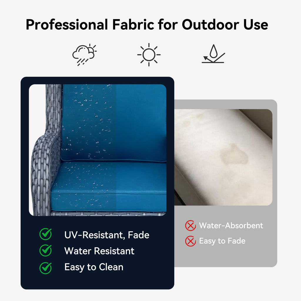 • EXTRA COMFORT CUSHION: Cushions are upholstered in top-of-the-line Olefin fabric, offering ultimate comfort, easy cleanability, and stain resistance. The 4-inch thick cushion is filled with a thickened high-resilience sponge to stay fluffy & non-deformation and give your body plenty of support.