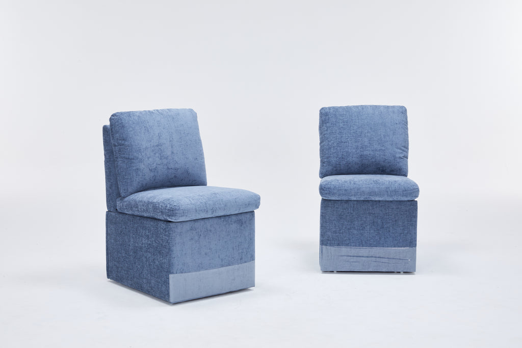Linen Upholstered Armless Dining Chair with Casters and Storage space-set of 2,BLUE