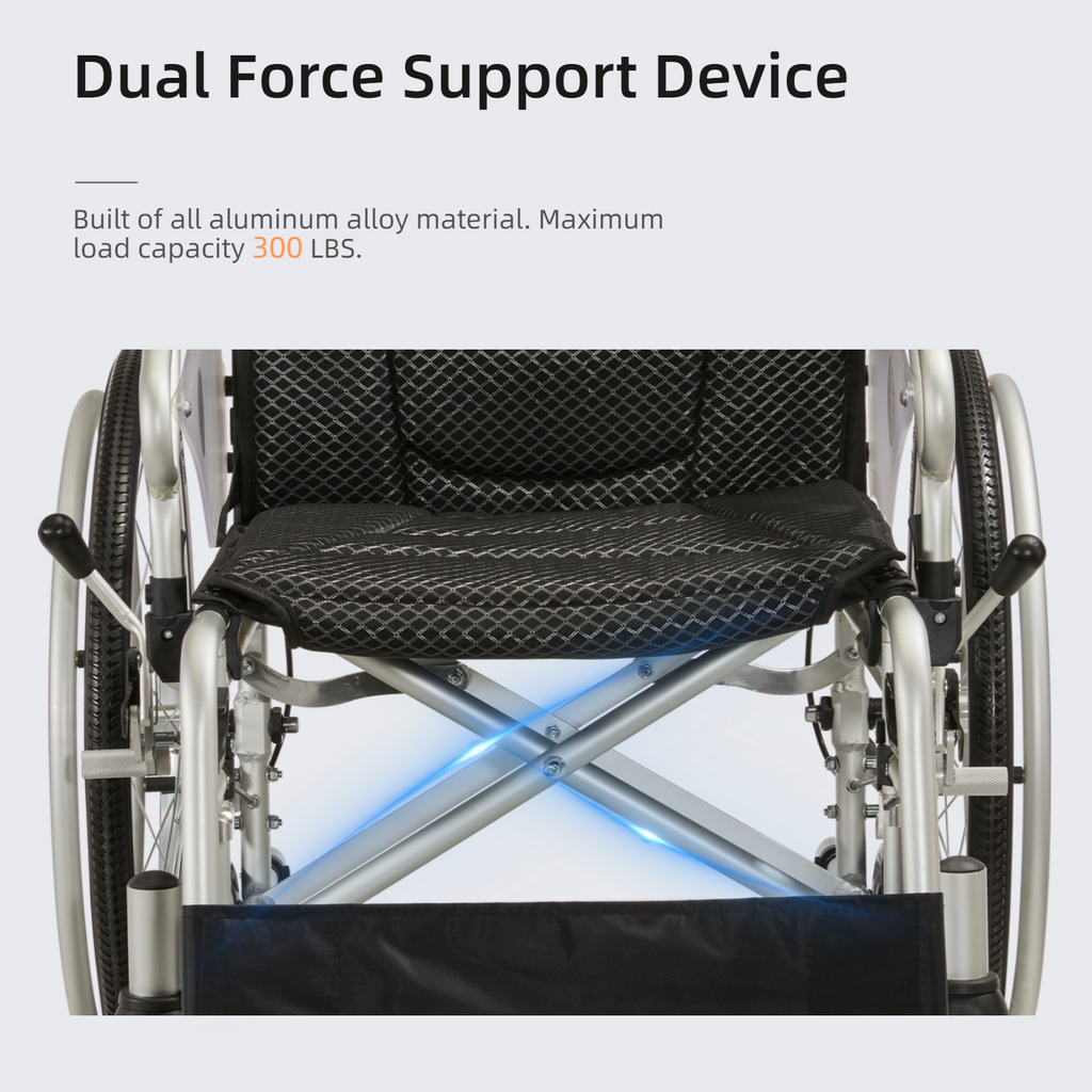 • 【Safe Wheelchair】 Double X structure support. Length adjustable anti-tipping device. Dual front and rear brakes and adjustable seat belt. Ensure user safety