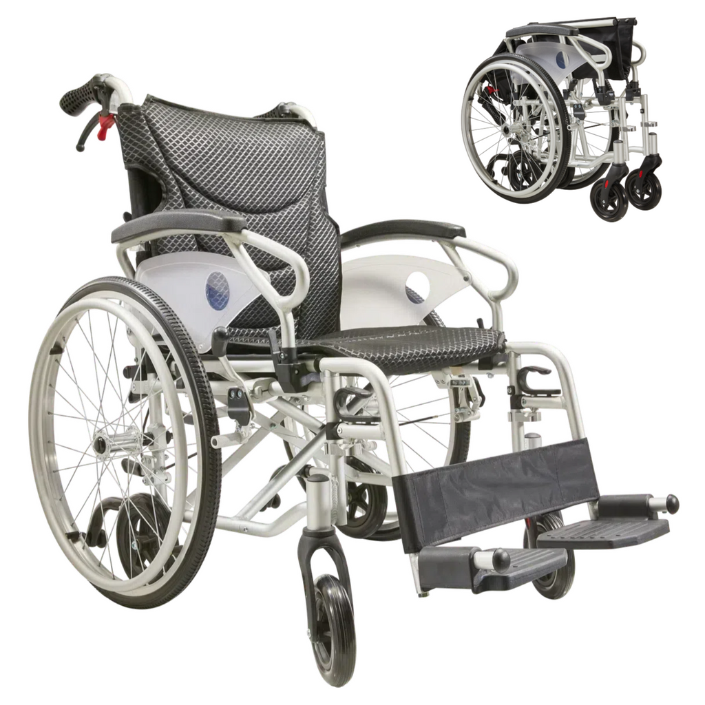 • 【Unique Wheelchair】 Premium aluminum alloy manual wheelchair. Unique 6-wheel design. 1 second easy to switch between different use needs. 3 seconds to complete the fast folding and storage, easy to operate.