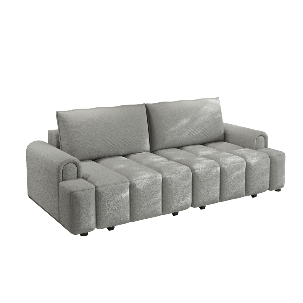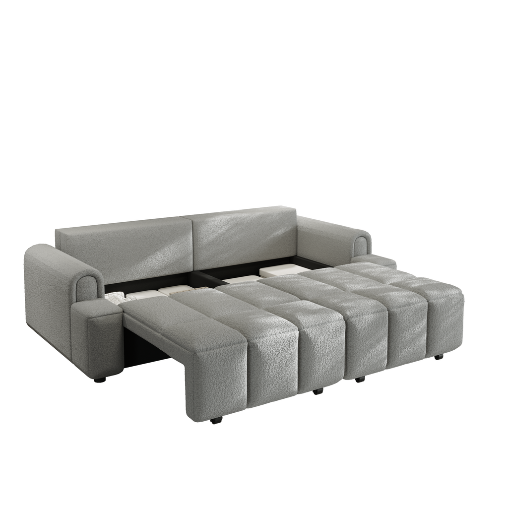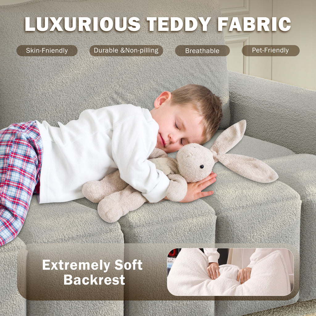 90.2' Comfy 4-Seater Modern Teddy Fabric Couch with Seats Storage, King Size 3-in-1 Convertible Sleeper Sofa Bed for Living Room,Office,Apartment,Light Grey(Old SKU:W1885S00250)